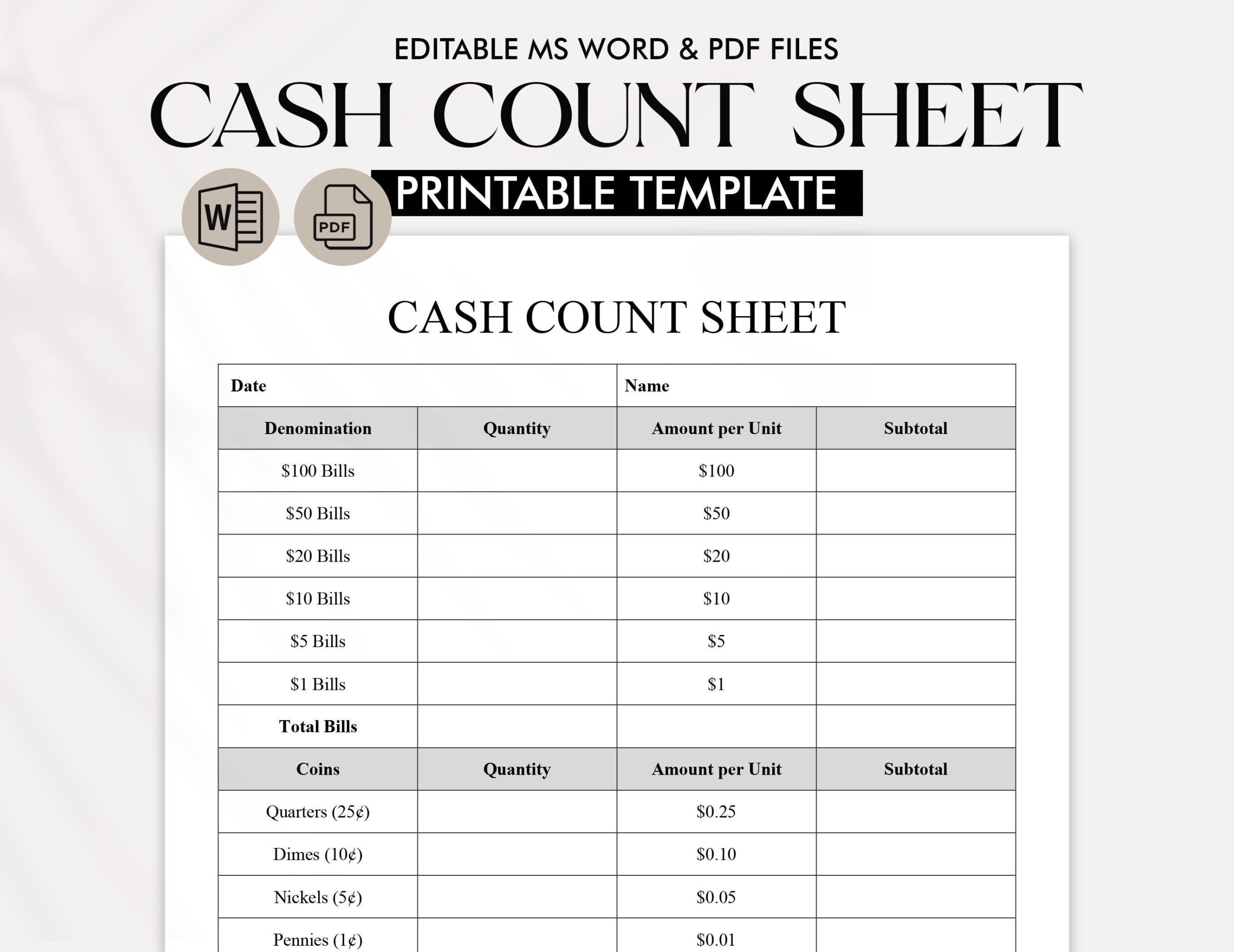 Printable Cash Register Balance Log Cash Drawer Reconciliation Sheet Point Of Sale Till Report Cash Breakdown Template Etsy