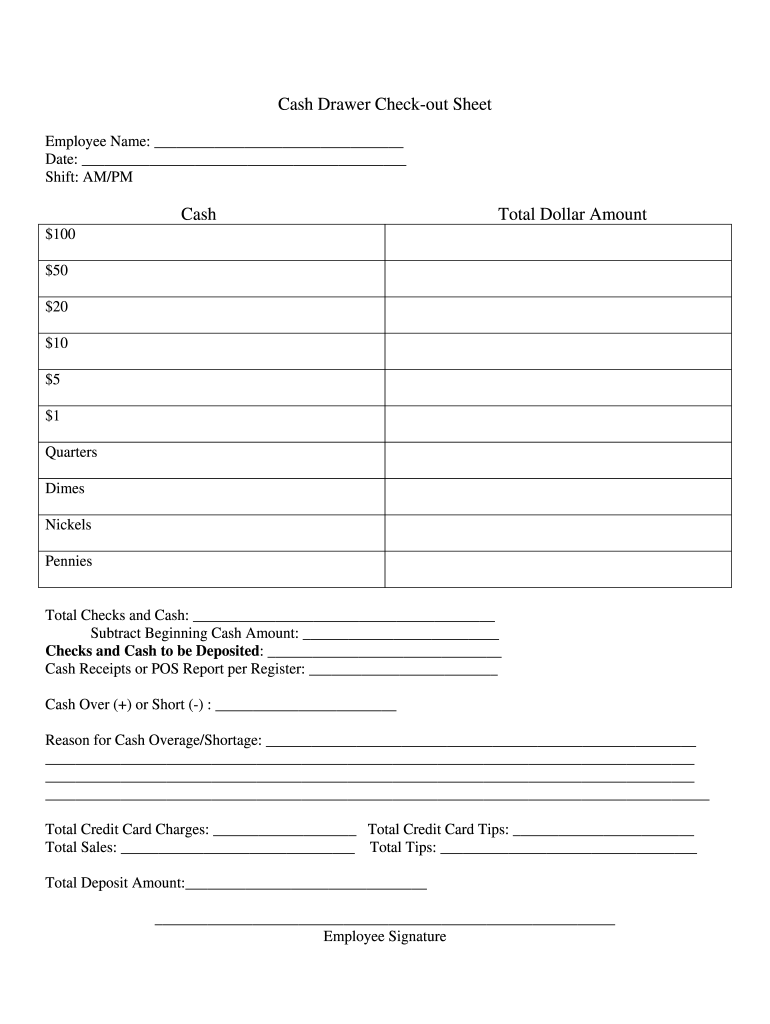 Printable Cash Drawer Count Sheet Blank Fill Online Printable Fillable Blank PdfFiller