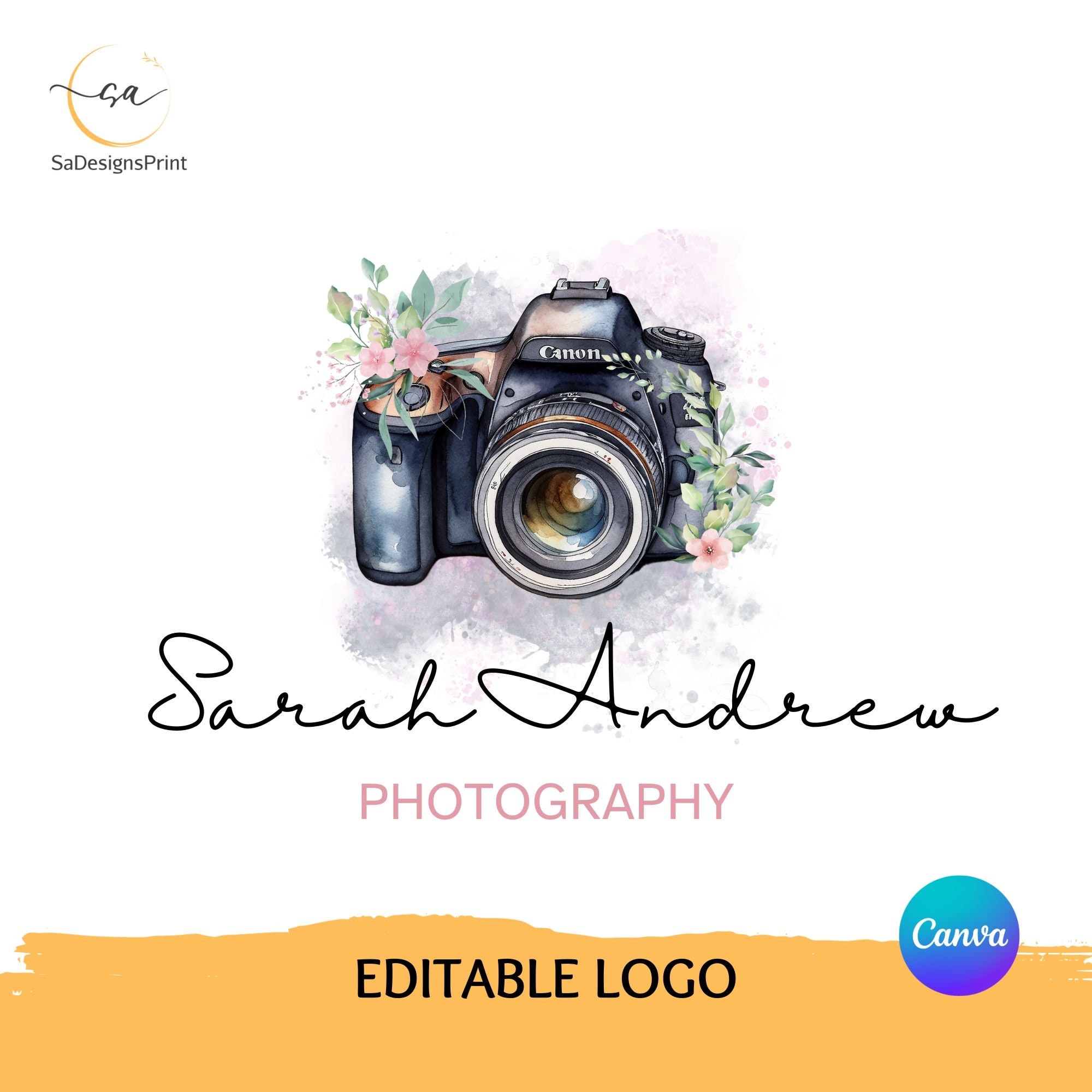 Editable Premade Photography Logo And Watermark Premade Floral Camera Logo Photographer Logo Canva Template Vintage Camera Logo Etsy