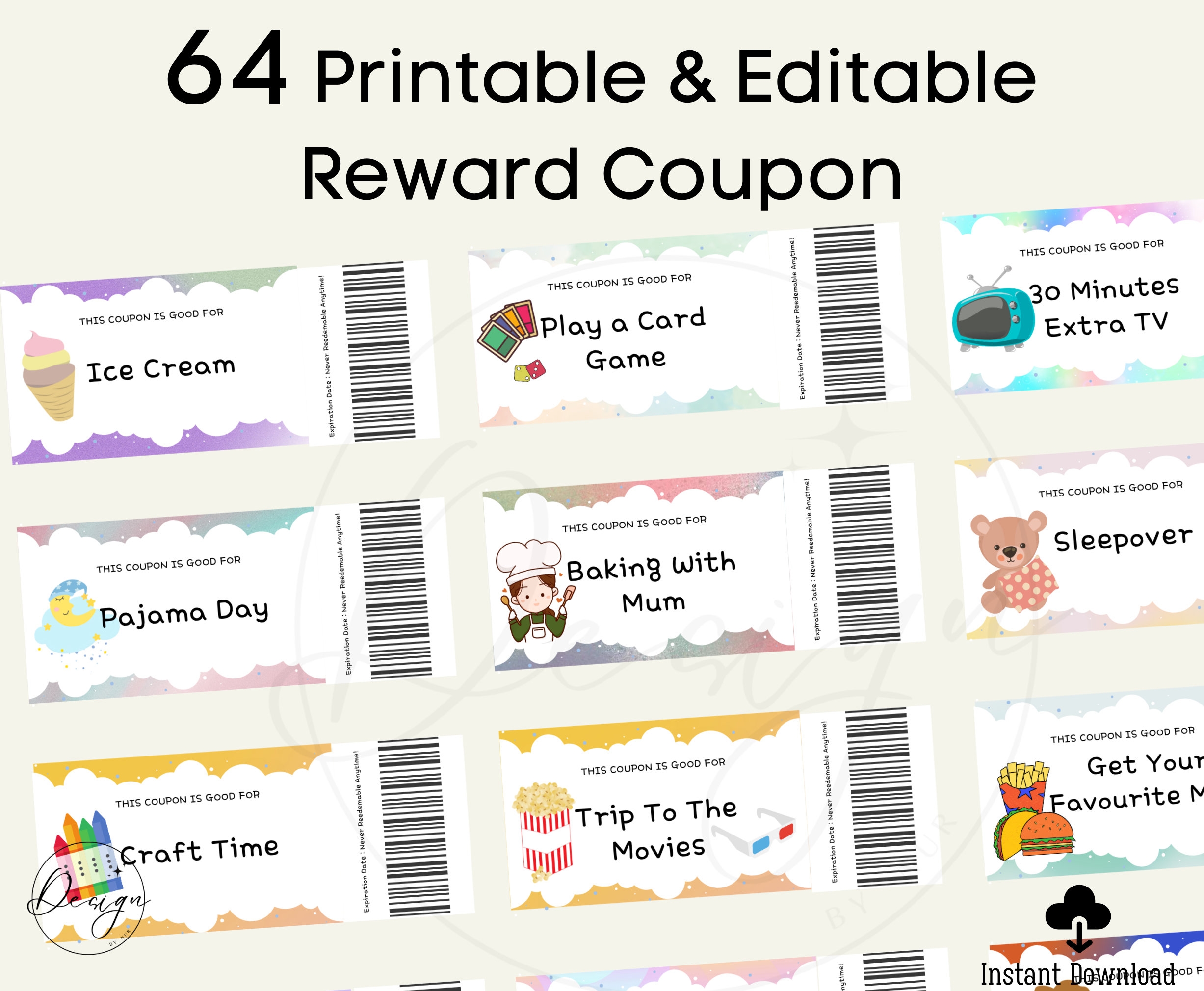 Not only are editable printable coupons a fun way to reward your kids, but they also encourage positive behavior. Children will be motivated to earn more coupons by being on their best behavior, completing chores, or doing well in school.