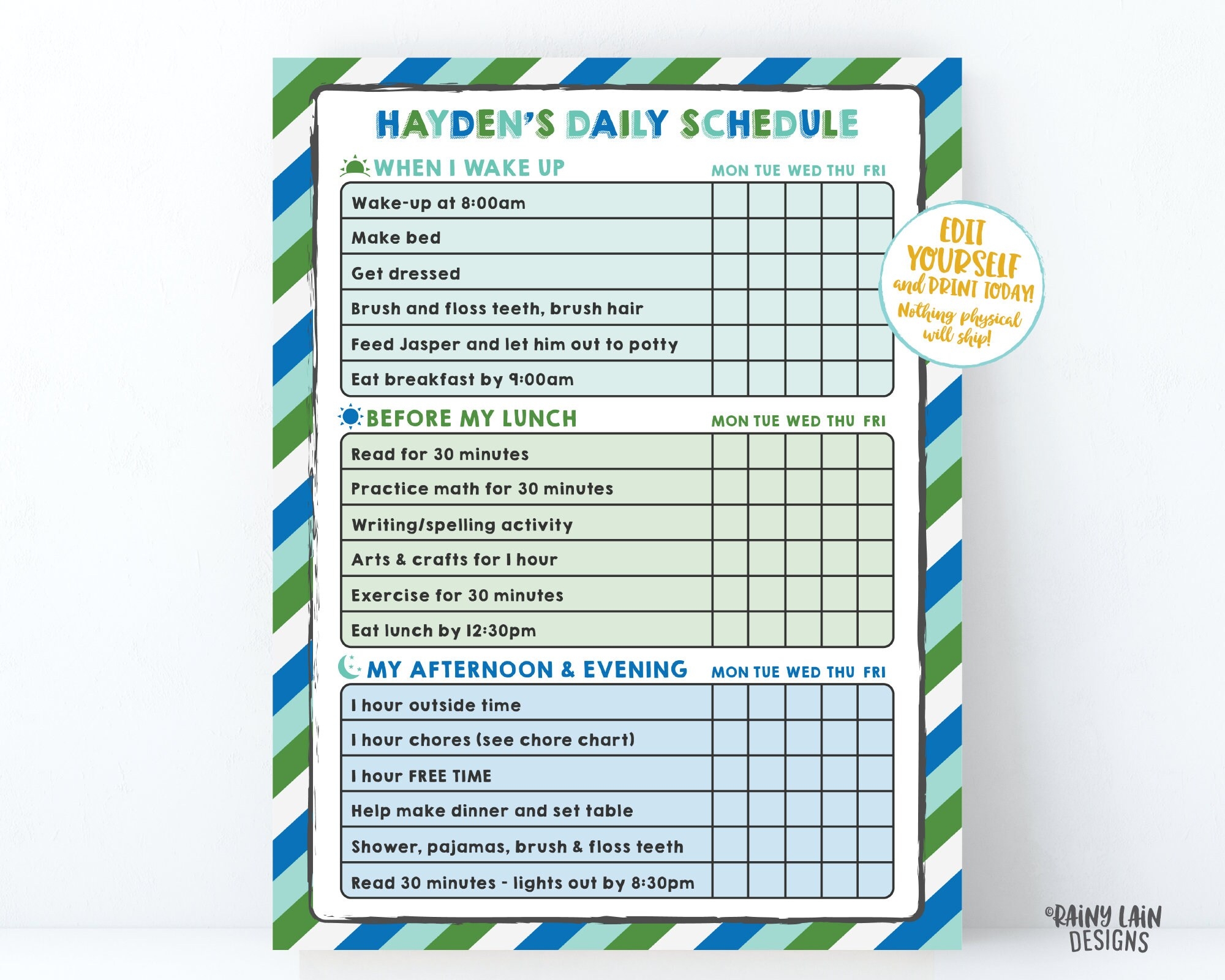 Home School Schedule Editable Kids Schedule Printable Kids Daily Checklist Task List Chore Chart Template Weekly Planner Homeschool Planner Etsy