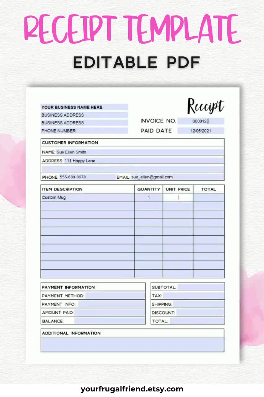 Printable Receipt Template Editable Microsoft Word Format digital Download Etsy
