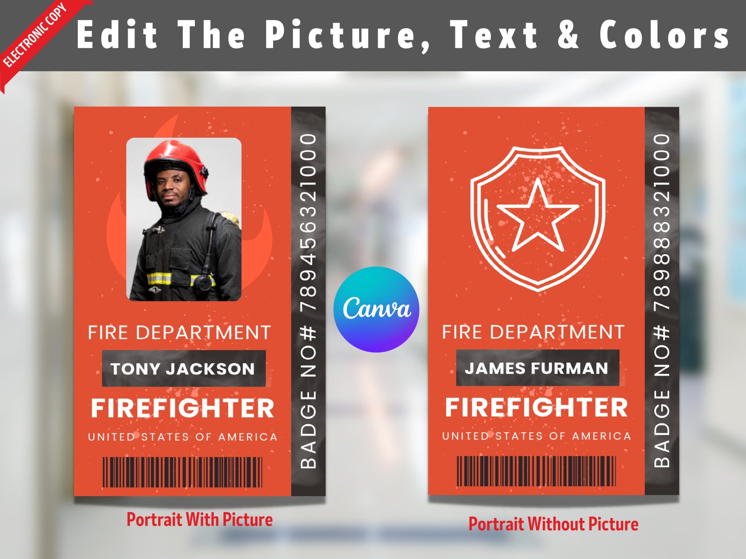 Personalized Firefighter Fire Department ID Badge ID Card Pretend Play Role Play Halloween Costume Customize Printable Canva Template Etsy