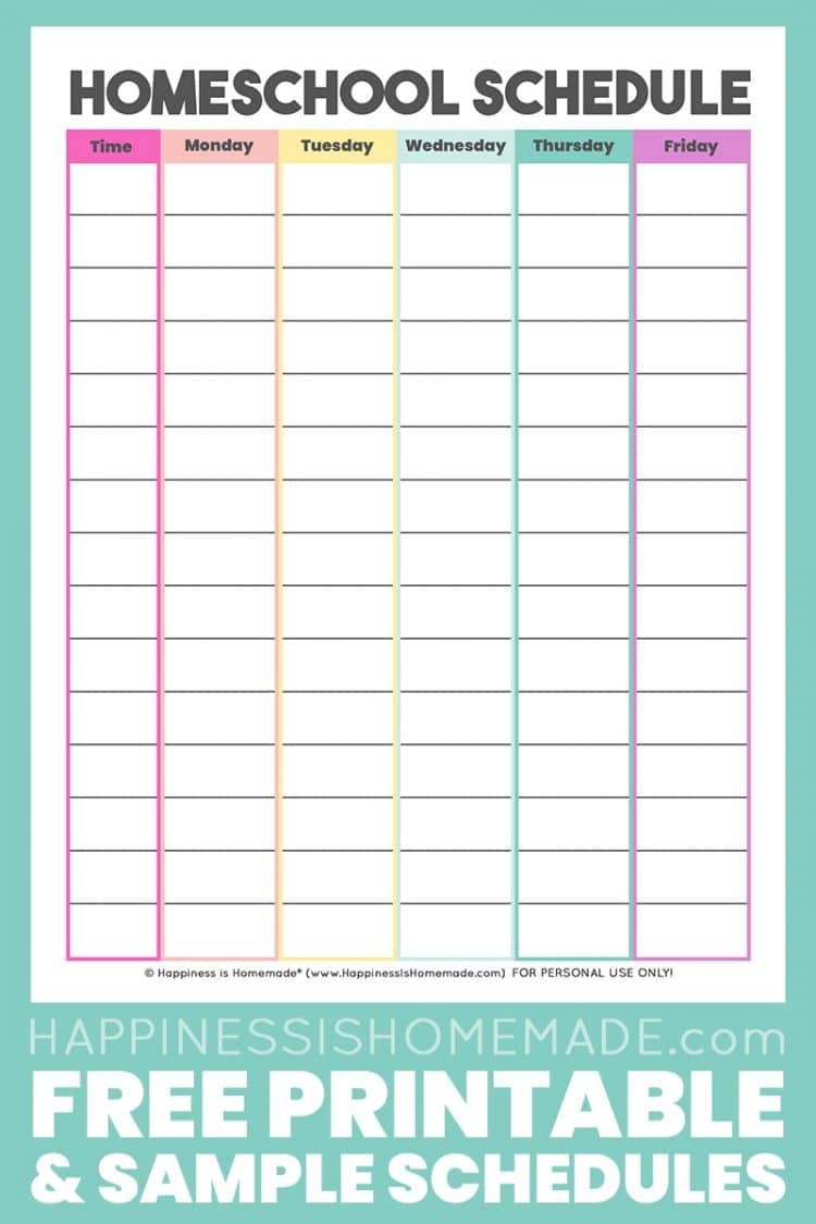 Homeschool Schedule Template Free Printable Happiness Is Homemade