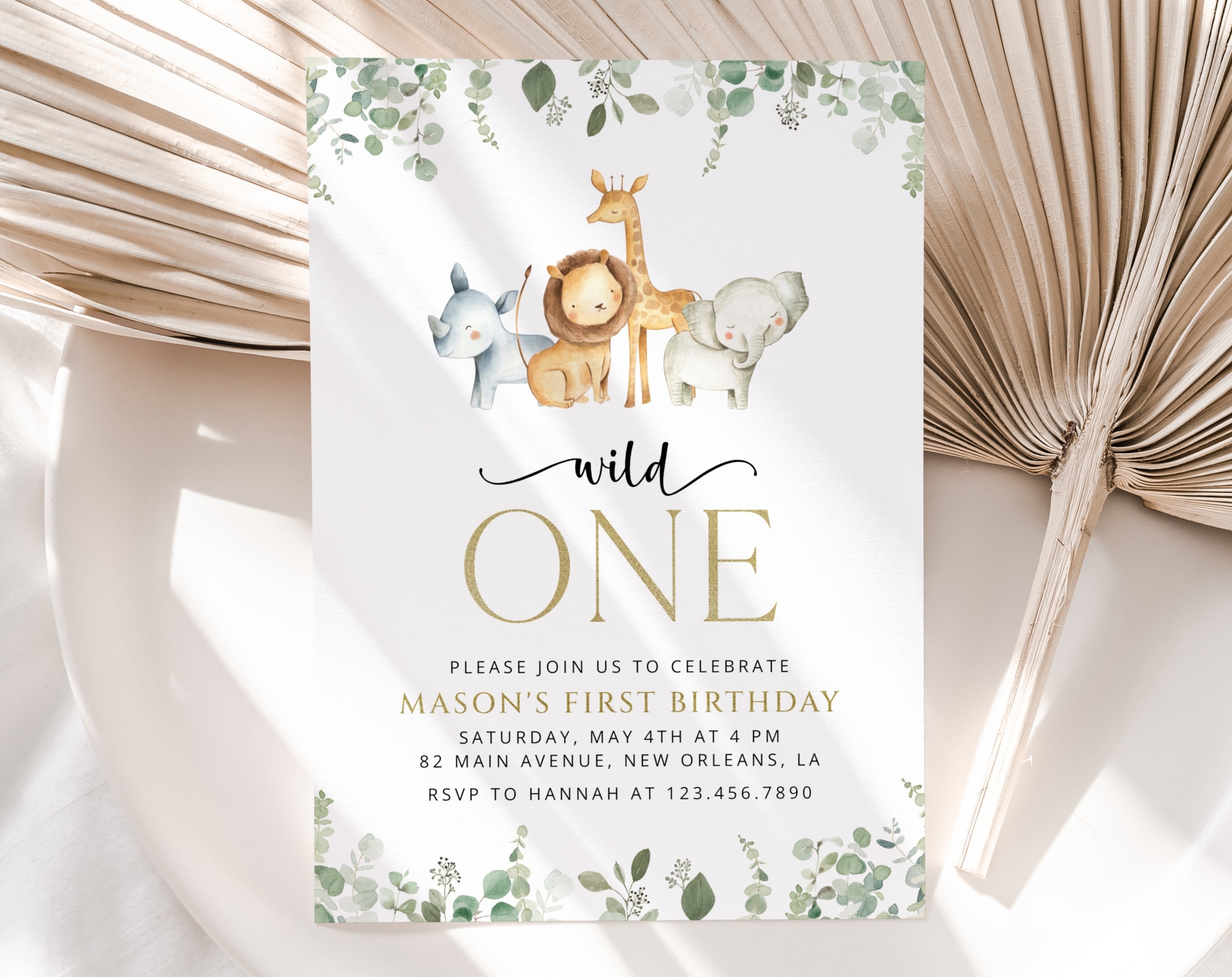 Safari Animals First Birthday Invitation Birthday Stationery