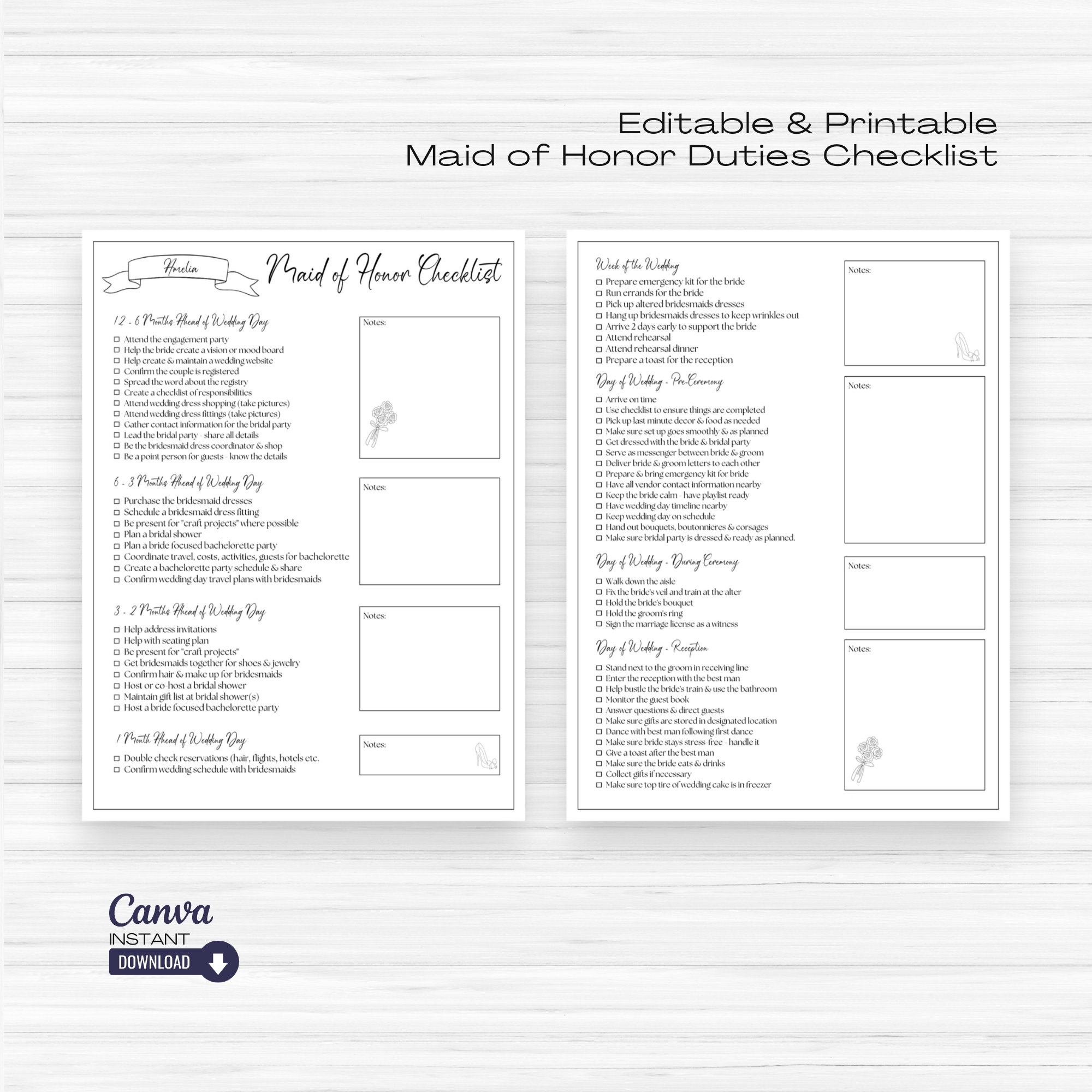 Editable Maid Of Honor Checklist Printable Maid Of Honor Duties Checklist Bridesmaid Planner Template Wedding Planning MOH Planner Etsy