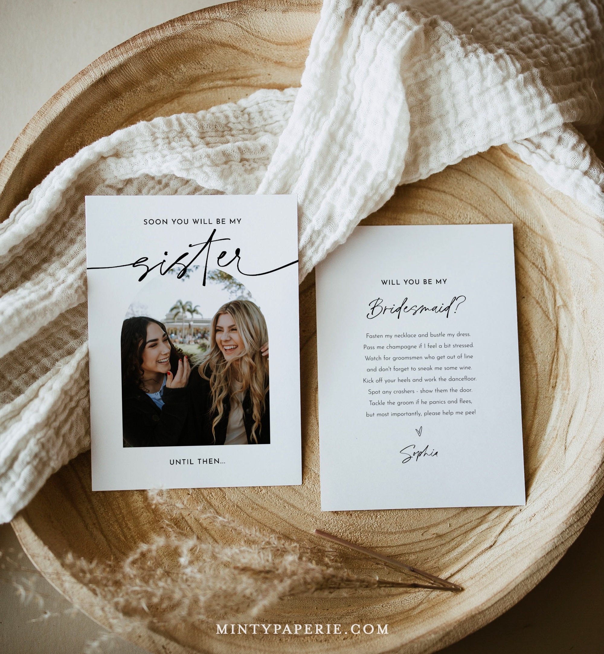Sister Bridesmaid Proposal Card Printable Photo Will You Be My Bridesmaid Maid Of Honor Editable Template Instant Download 0032 114BMB
