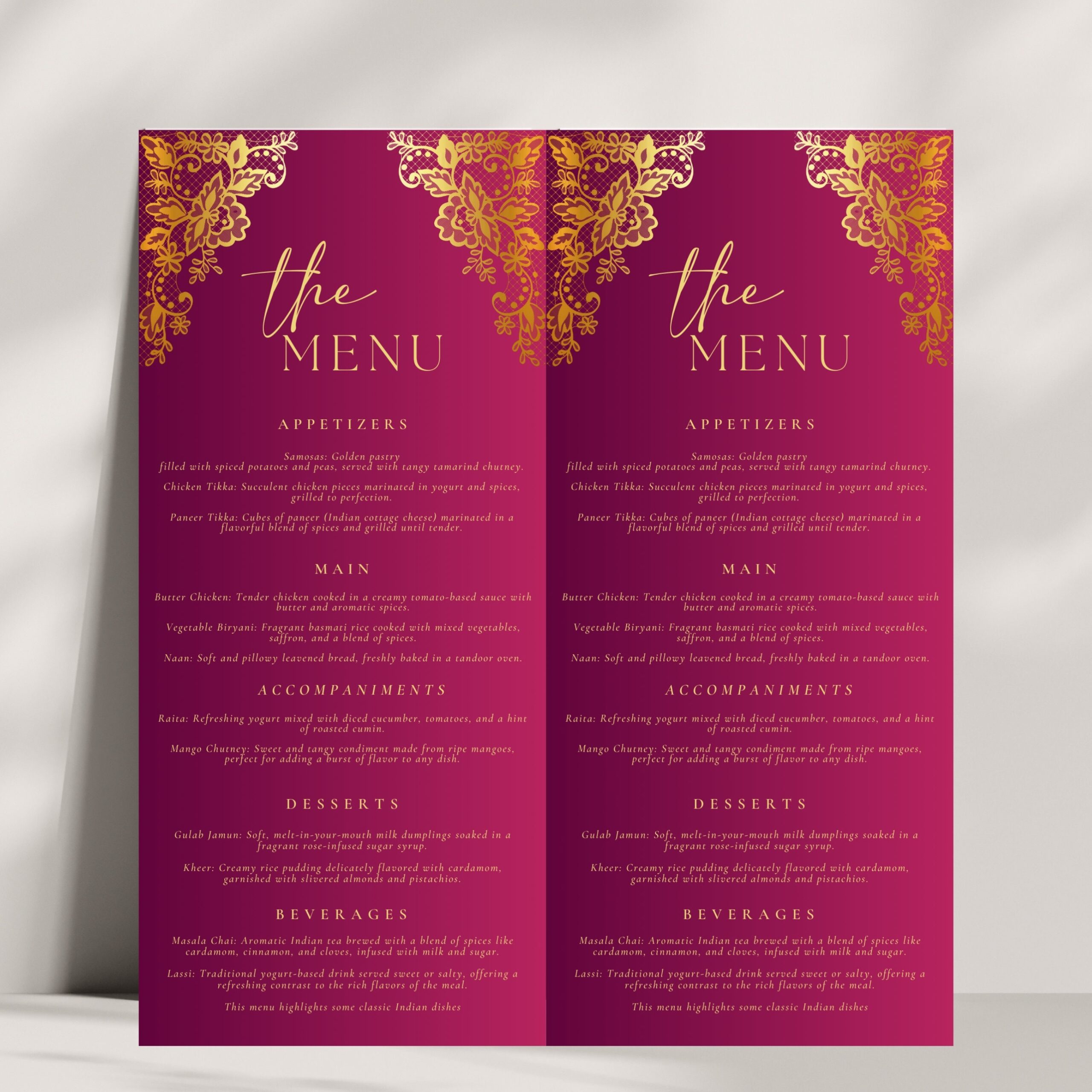 Editable Indian Wedding Dinner Menu Template Traditional Red And Gold Design DIY Ethnic Menu Elegant And Customizable Etsy
