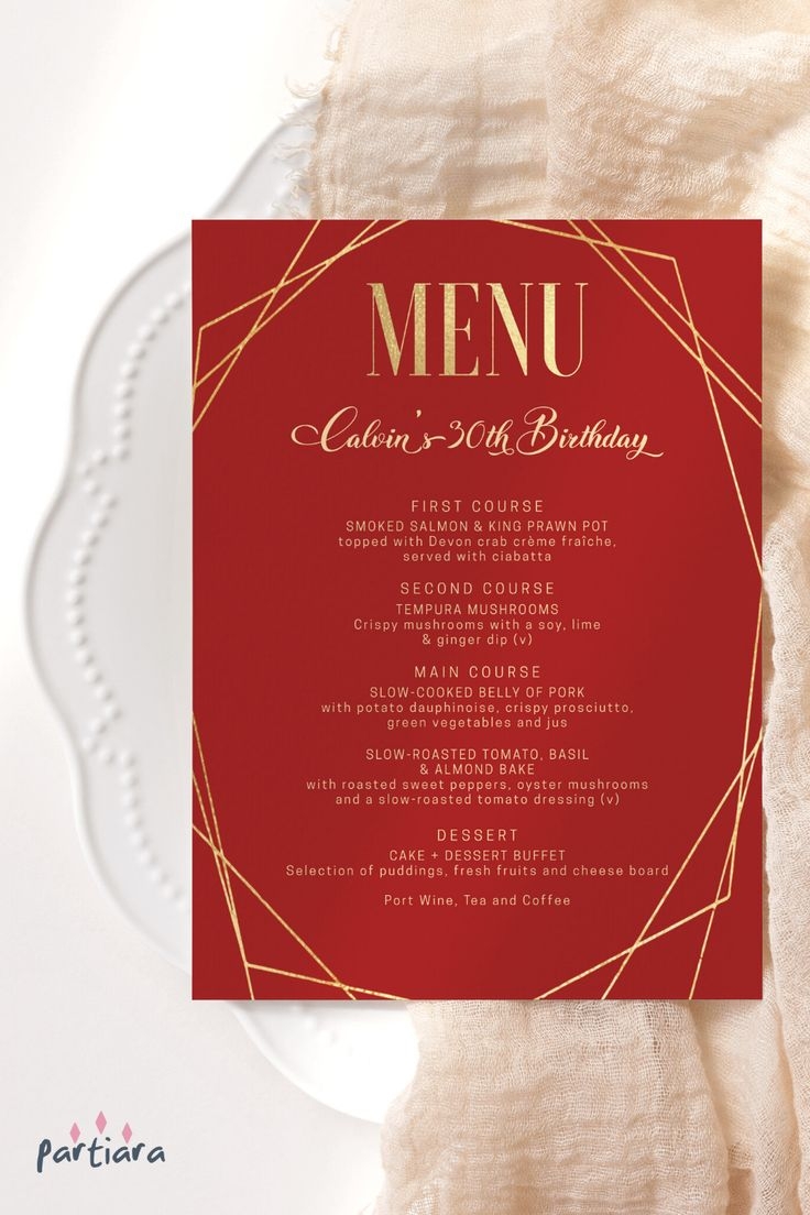 Sophisticated Red Gold Geometric Party Menu