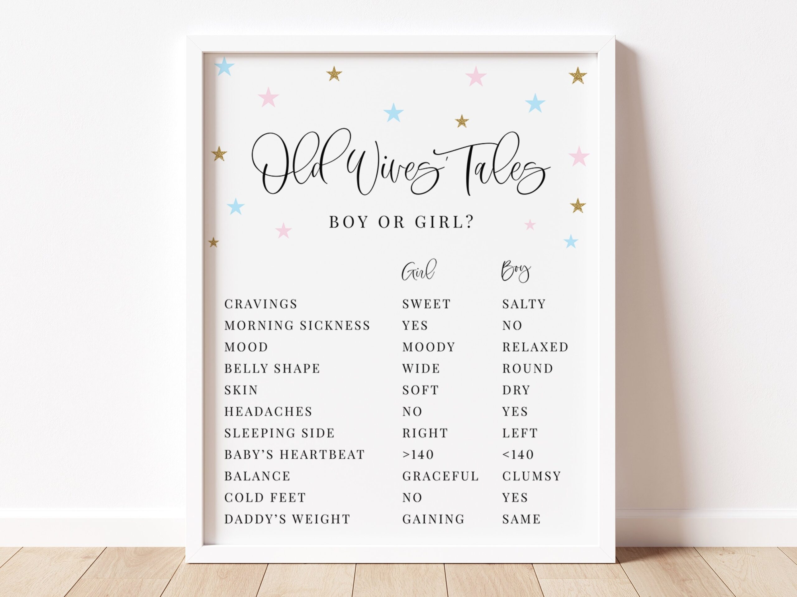 Old Wives Tale Gender Reveal Predictor Fun Baby Shower Game Instant Download Printable Available In Two Sizes 5×7 And 8×11 Etsy
