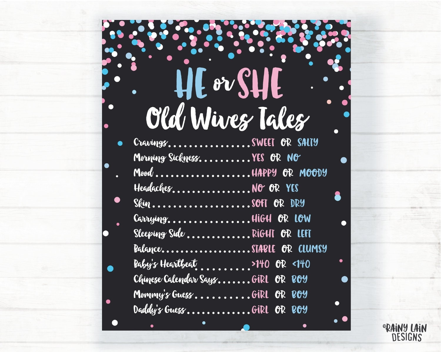Old Wives Tales Sign Gender Reveal Poster Gender Reveal Old Wives Tales Chalkboard Old Wives Tales Poster Confetti He Or She Printable Etsy