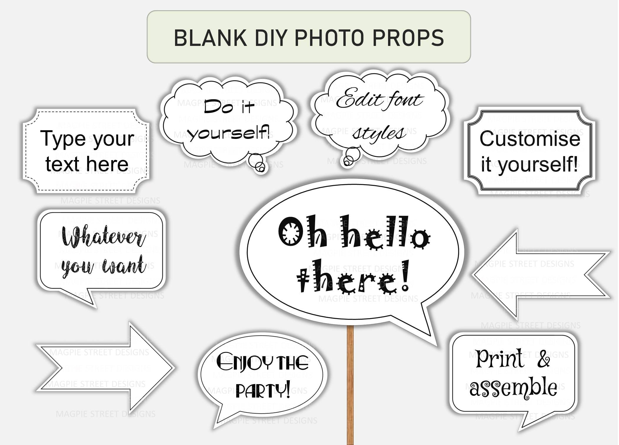 Blank DIY White Photo Booth Props Custom Speech Bubbles Wedding Shower Anniversary Party Printable Party Decors Instant Download PDF Etsy