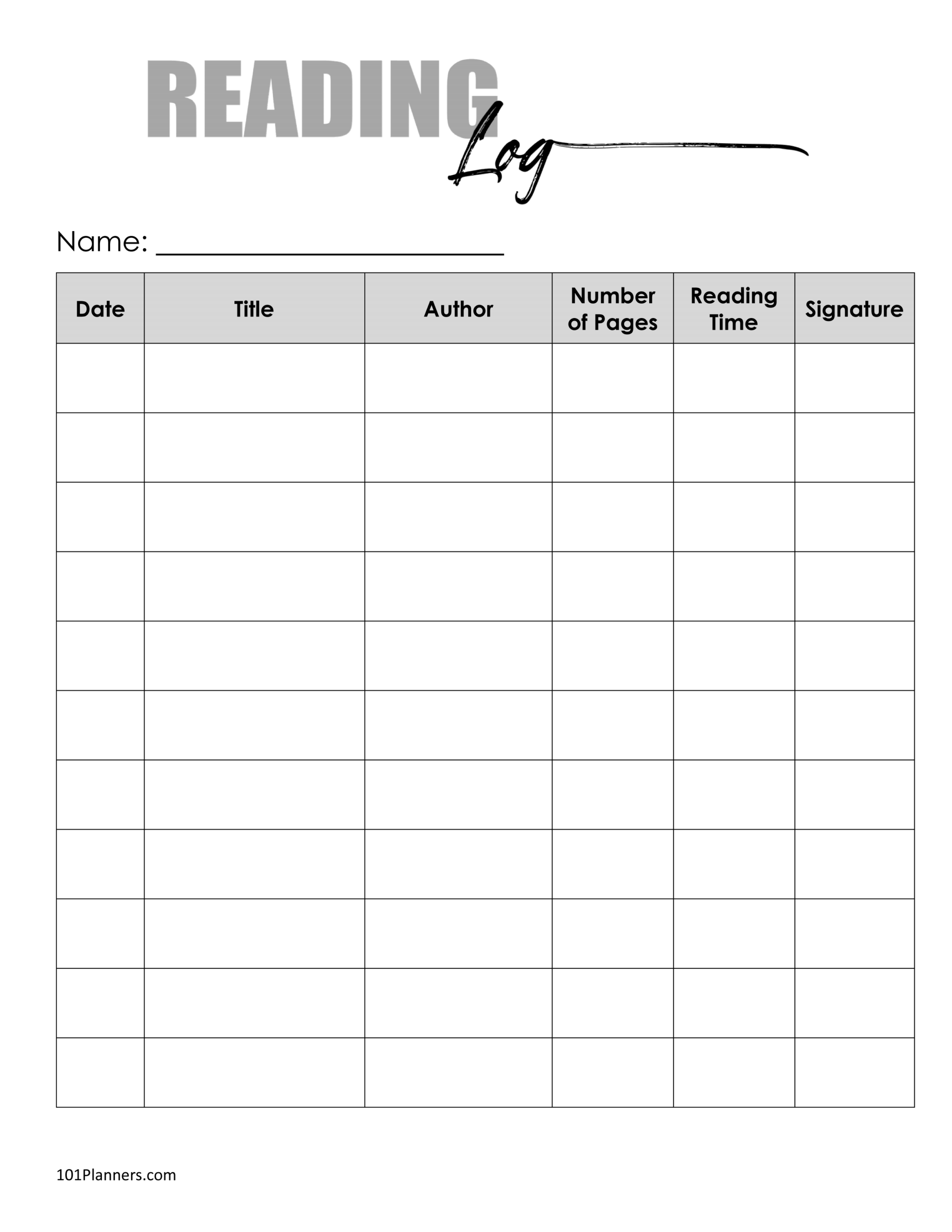 Free Printable Reading Log Template Bullet Journal Traditional