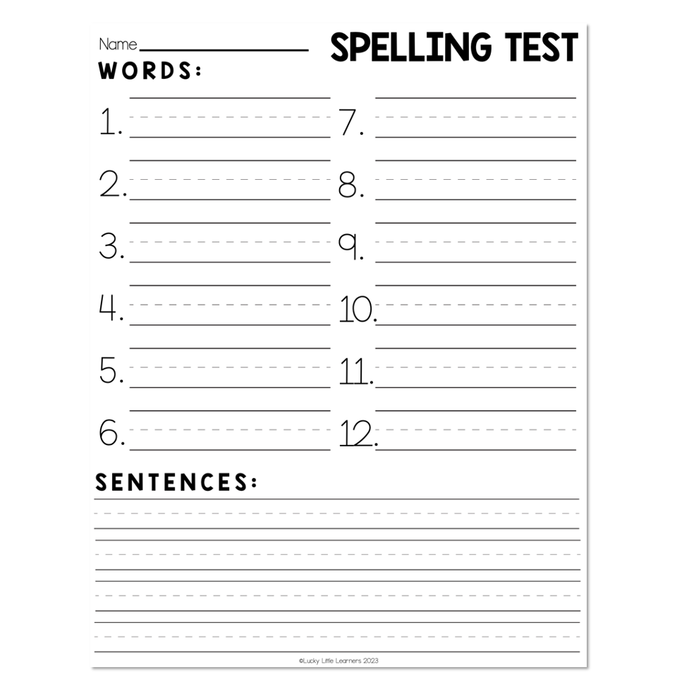 Free Printable Spelling Test Templates PDF 10 15 20 25 Words