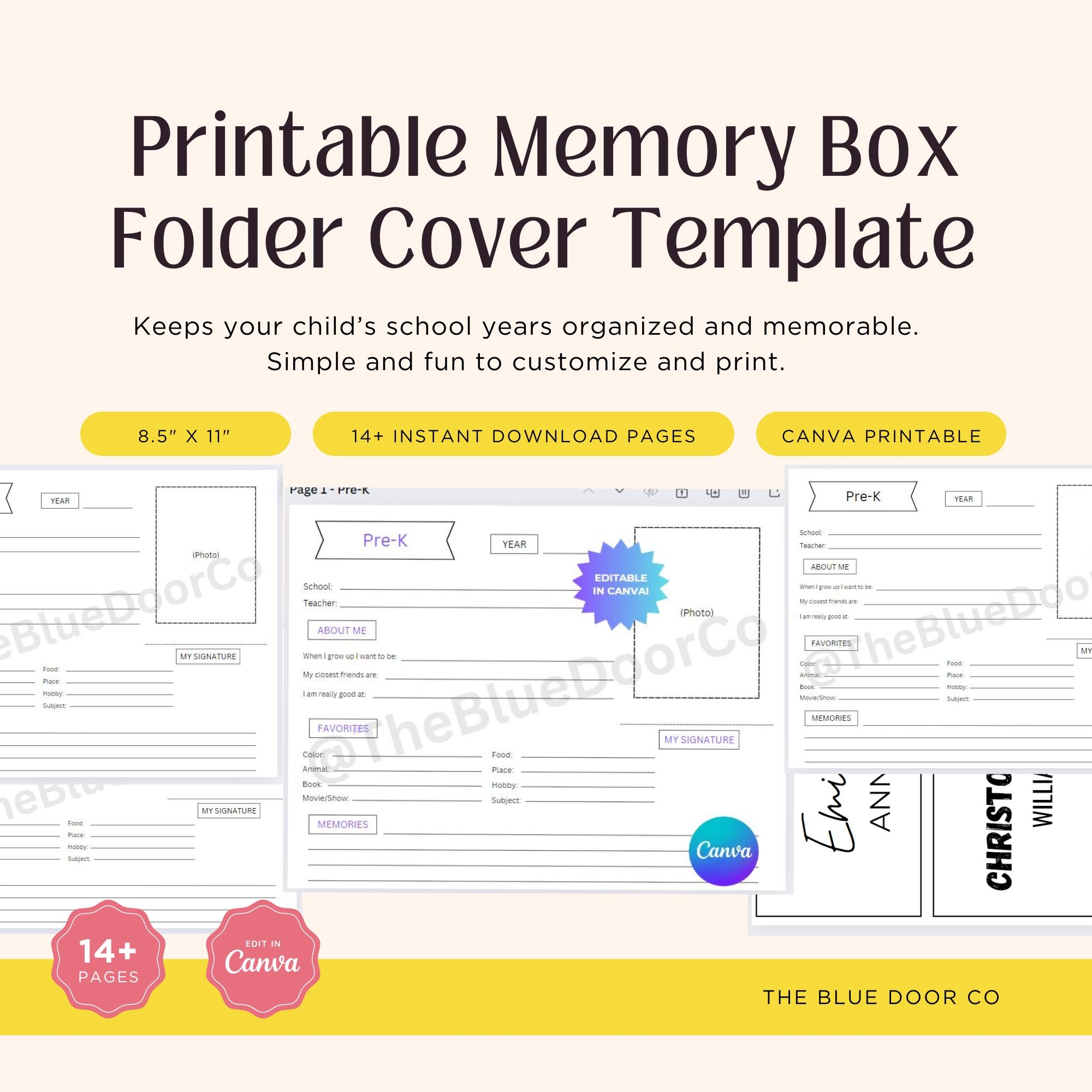 Printable Memory Box Folder Cover Template Editable In Canva Pre k To 12th Grade 14 Pages Free Bonus Name Label Etsy