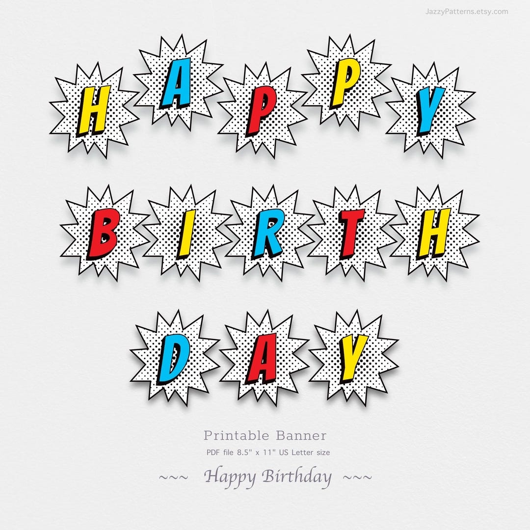 Printable Superhero Banner For Birthday Party Comic Book Burst Effect Instant Download Etsy