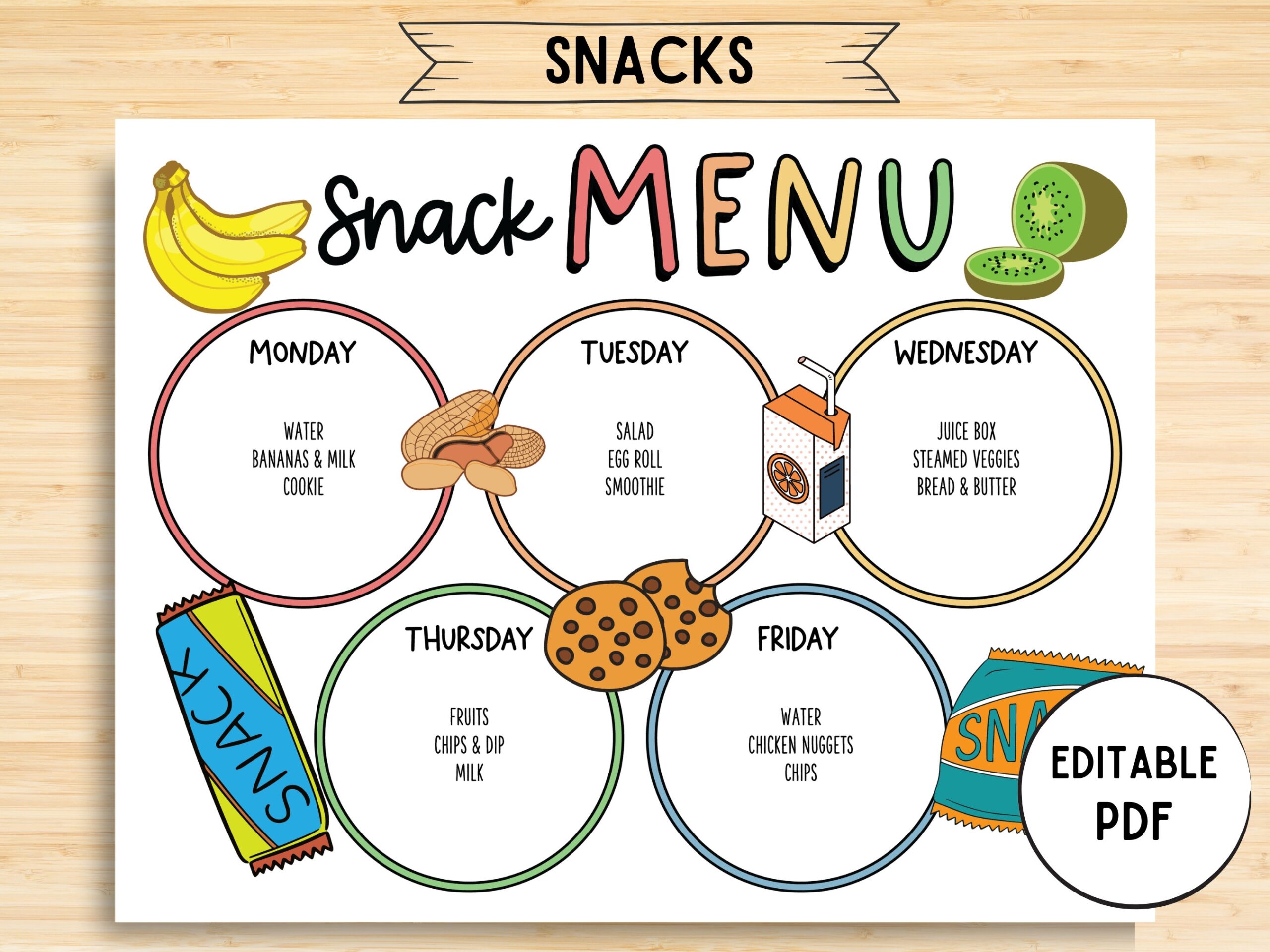 Editable Kids Snack Planner Meal Weekly Planner Snacks Menu For Children Instant Download School Snack Menu Planner Etsy