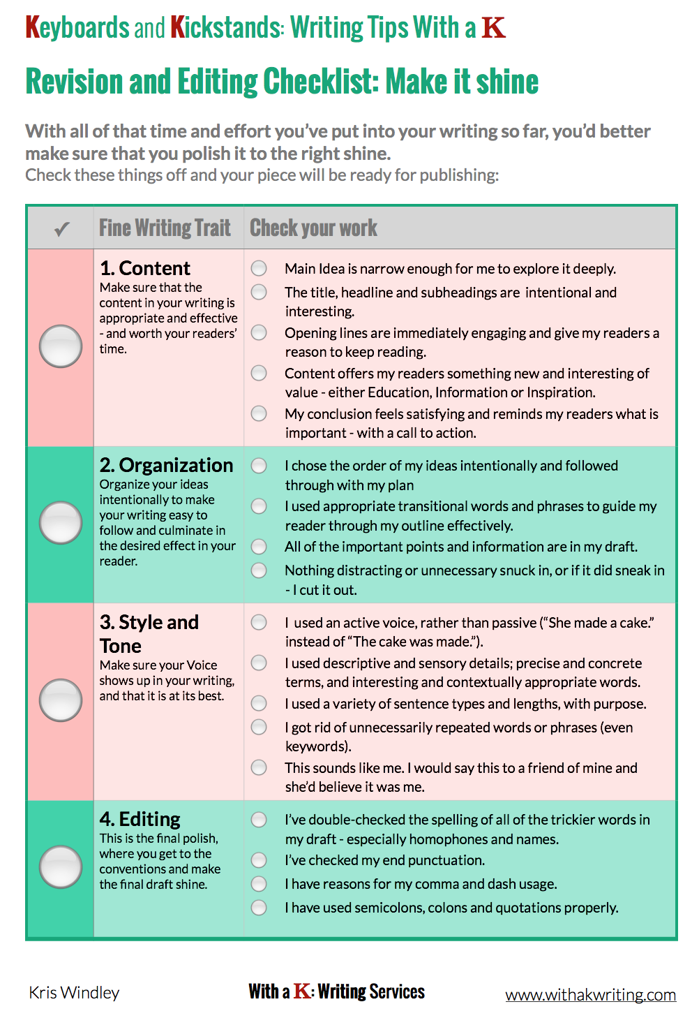 Free Checklist How To Effectively Revise And Edit Your Writing To A Shine Tuesday Tips Writing Coach Kris Windley