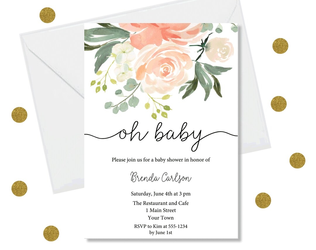 DIY Editable Invitation Greenery Baby Shower Invitation Oh Baby Invitation Template Instant Download Editable PDF Printable Etsy