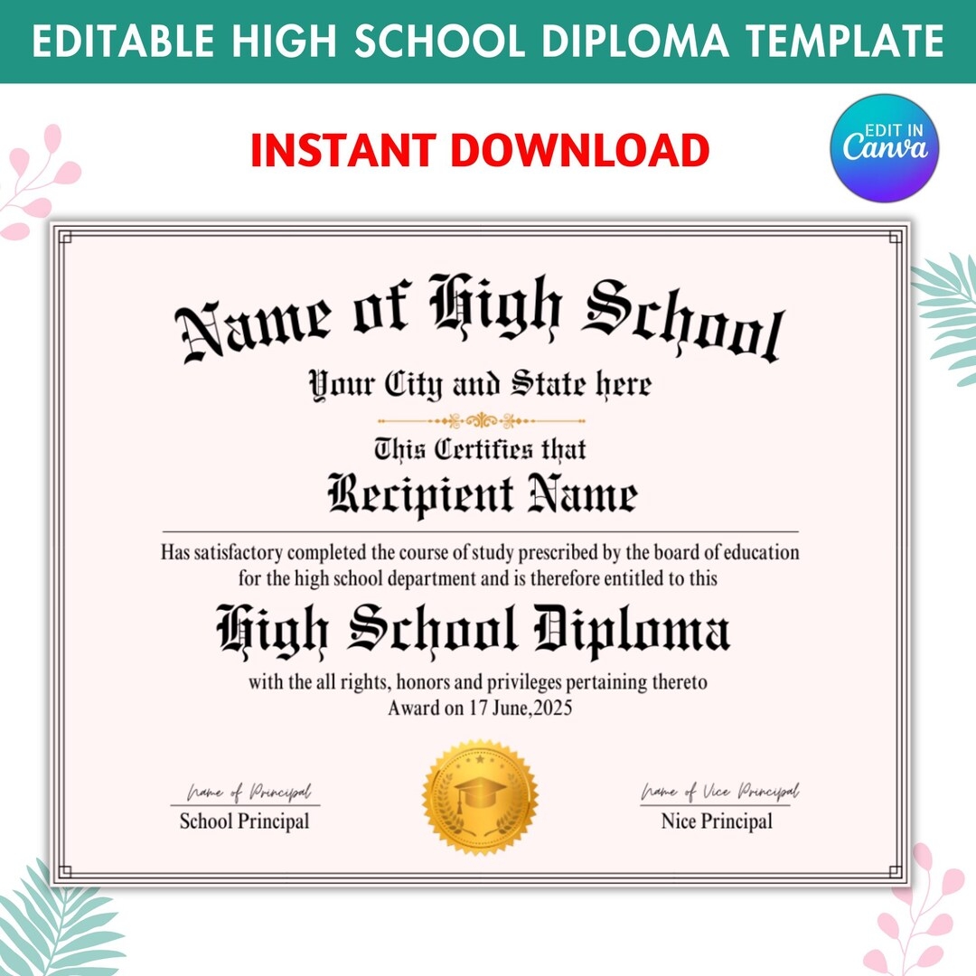 High School Diploma Template Editable Home School Diploma High School Diploma Template Diploma Replica Template Digital Download Etsy