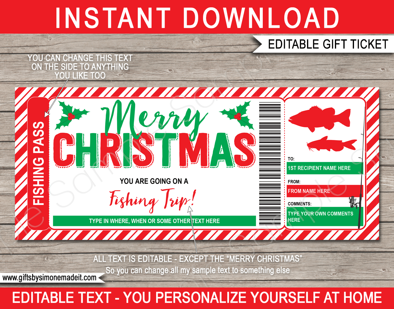 Christmas Fishing Trip Ticket Template Surprise Fishing Trip Reveal Gift