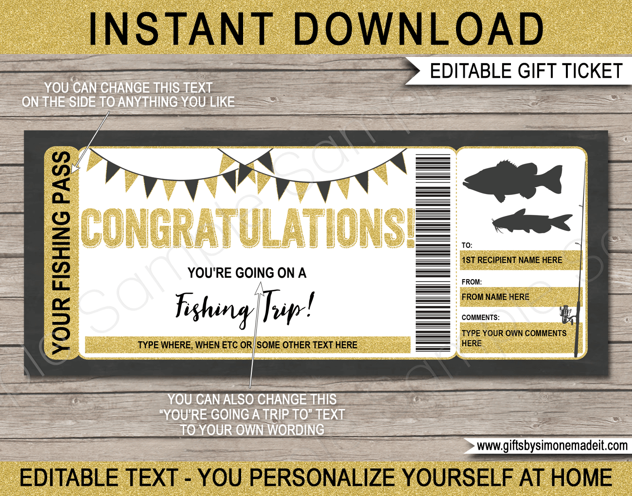 Congratulations Fishing Trip Ticket Template Printable Gift Ticket