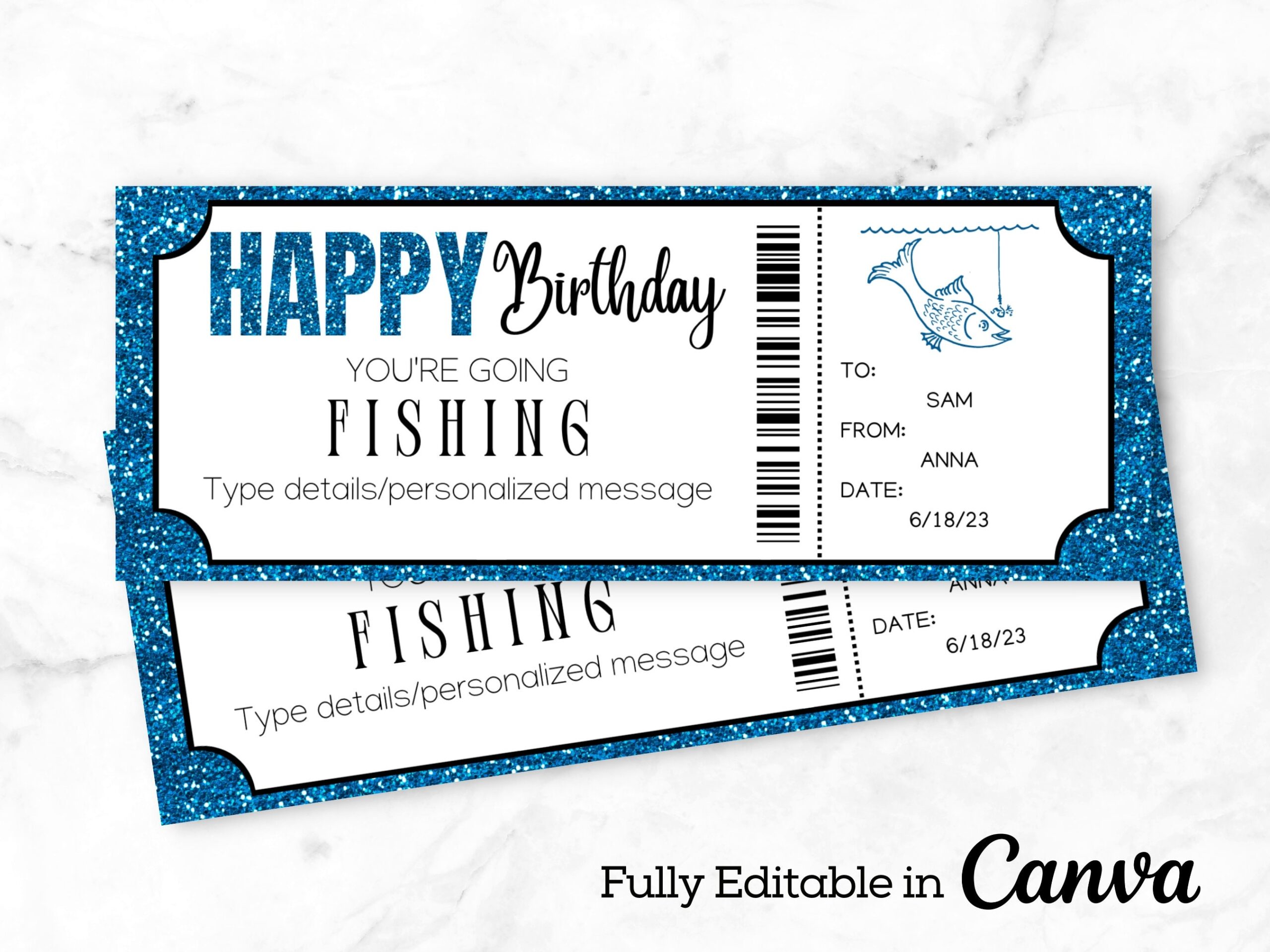 Fishing Birthday Gift Voucher Pass Fishing Trip Certificate Ticket Fishing Ticket Template Download Editable Printable Gift Etsy