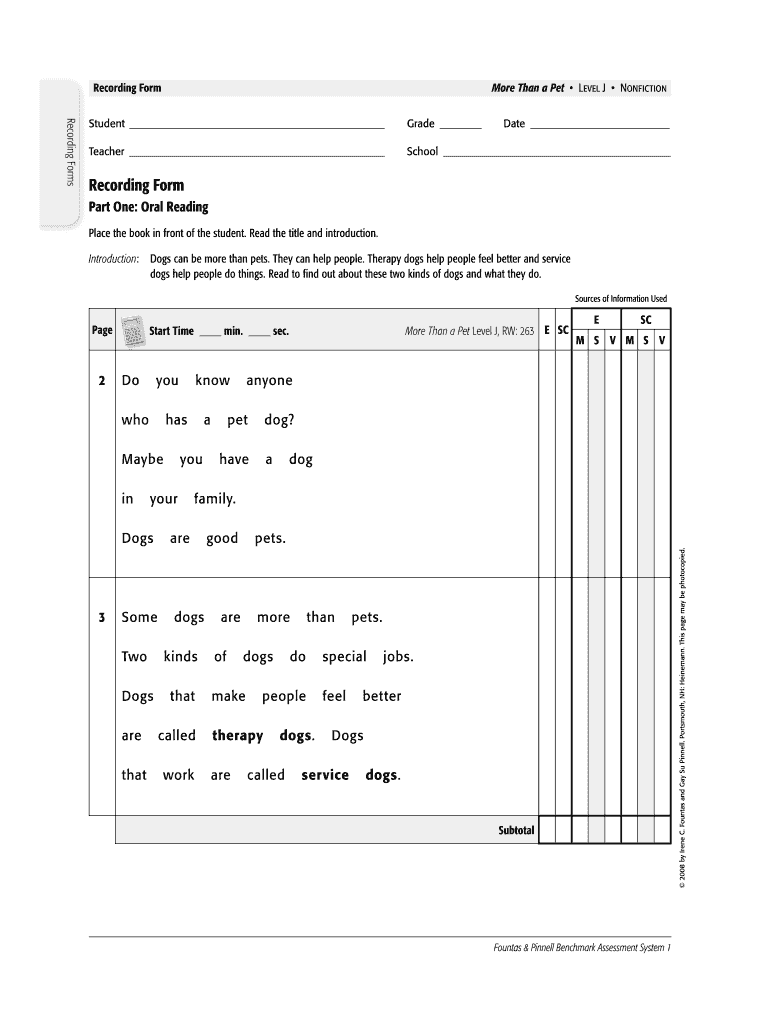 Fountas And Pinnell Running Records Pdf Fill Online Printable Fillable Blank PdfFiller