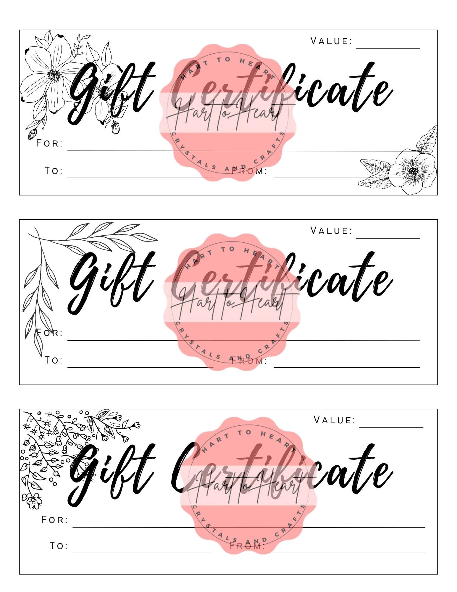 Blank Gift Certificates Simple Flower Lines Etsy