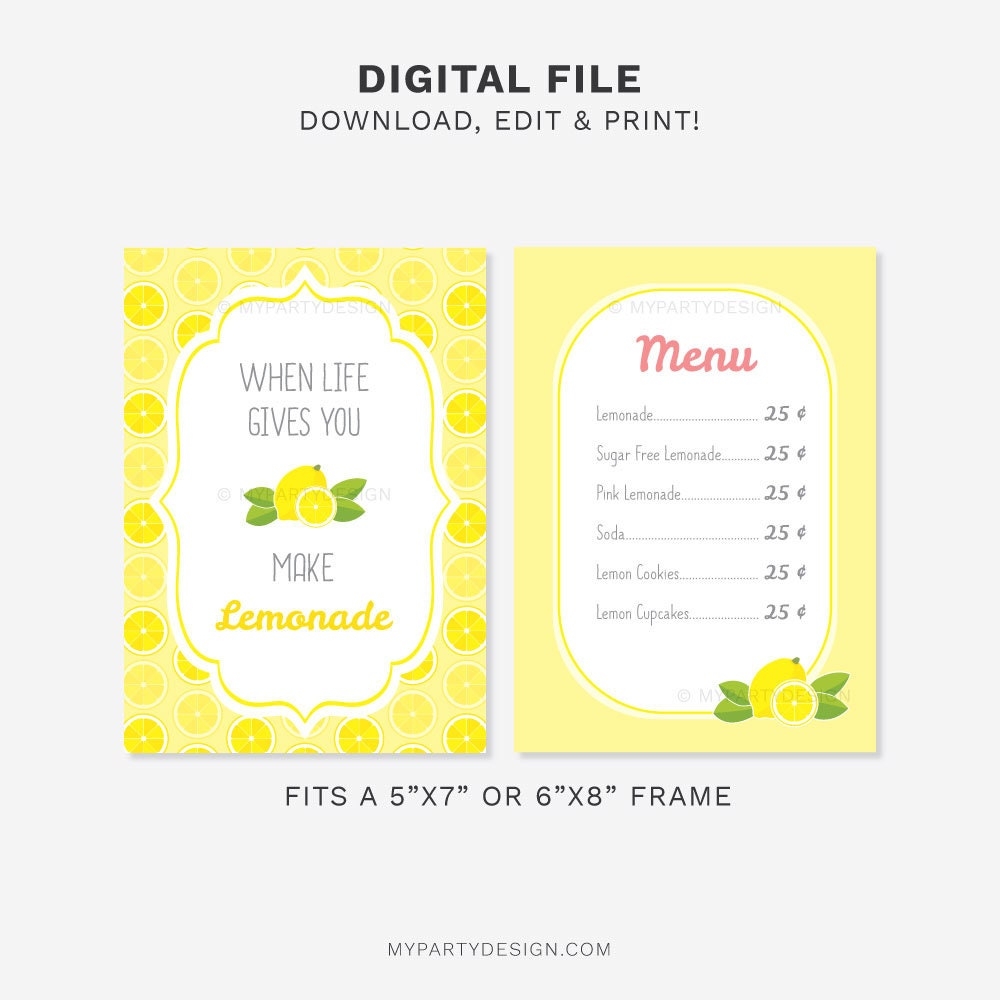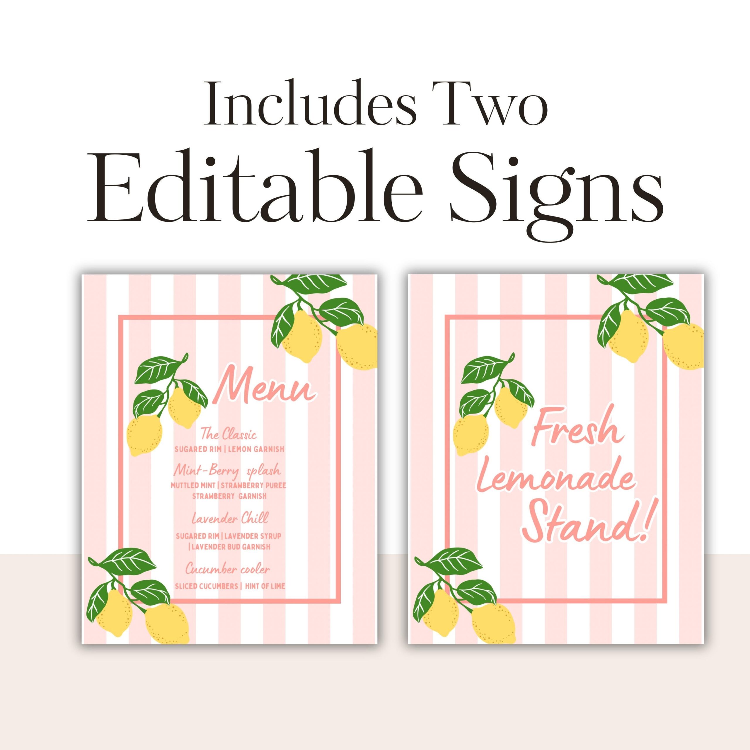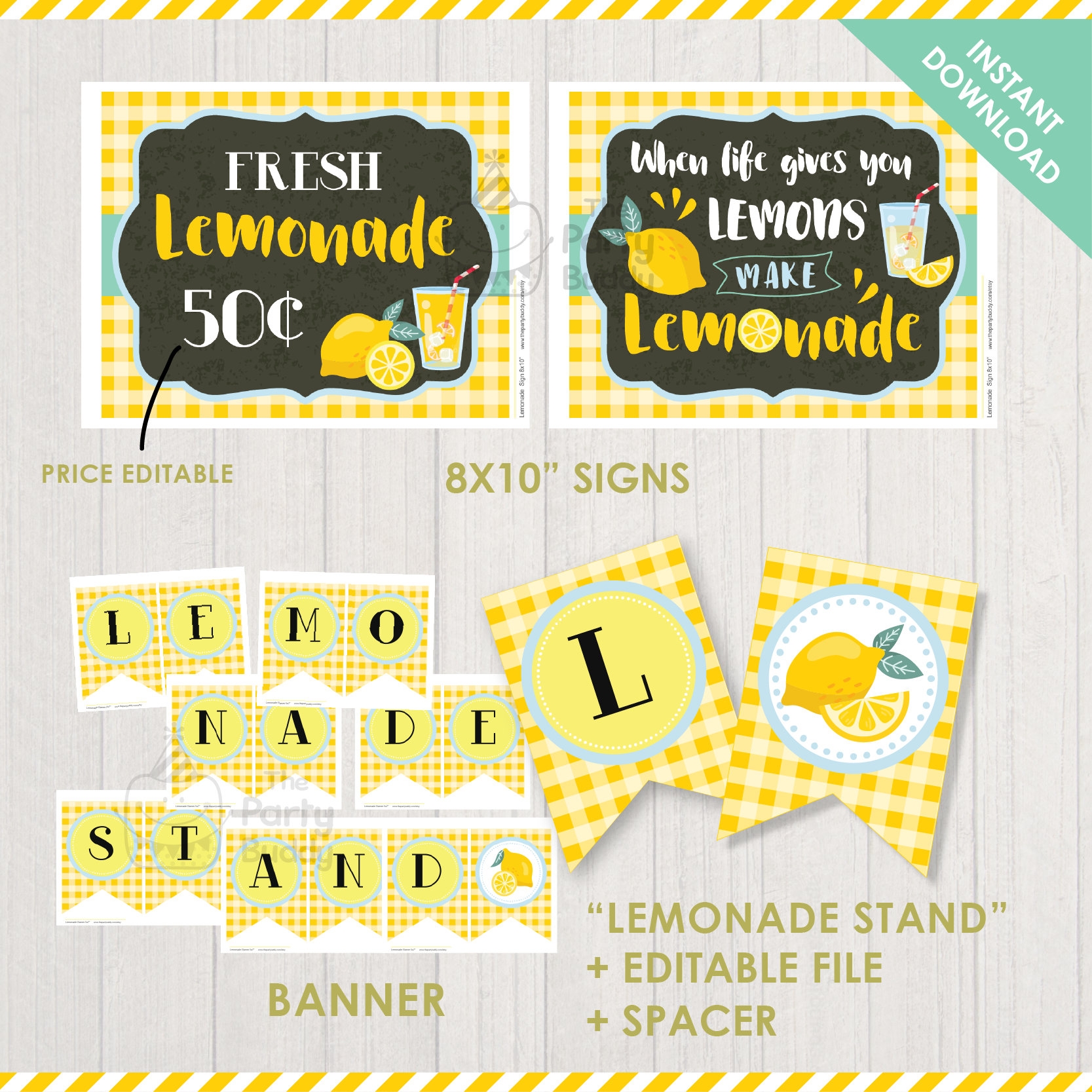 Lemonade Stand Signs And Decorations Lemon Birthday Printables Girl Party Decor INSTANT DOWNLOAD Printable PDF With Editable Text Etsy