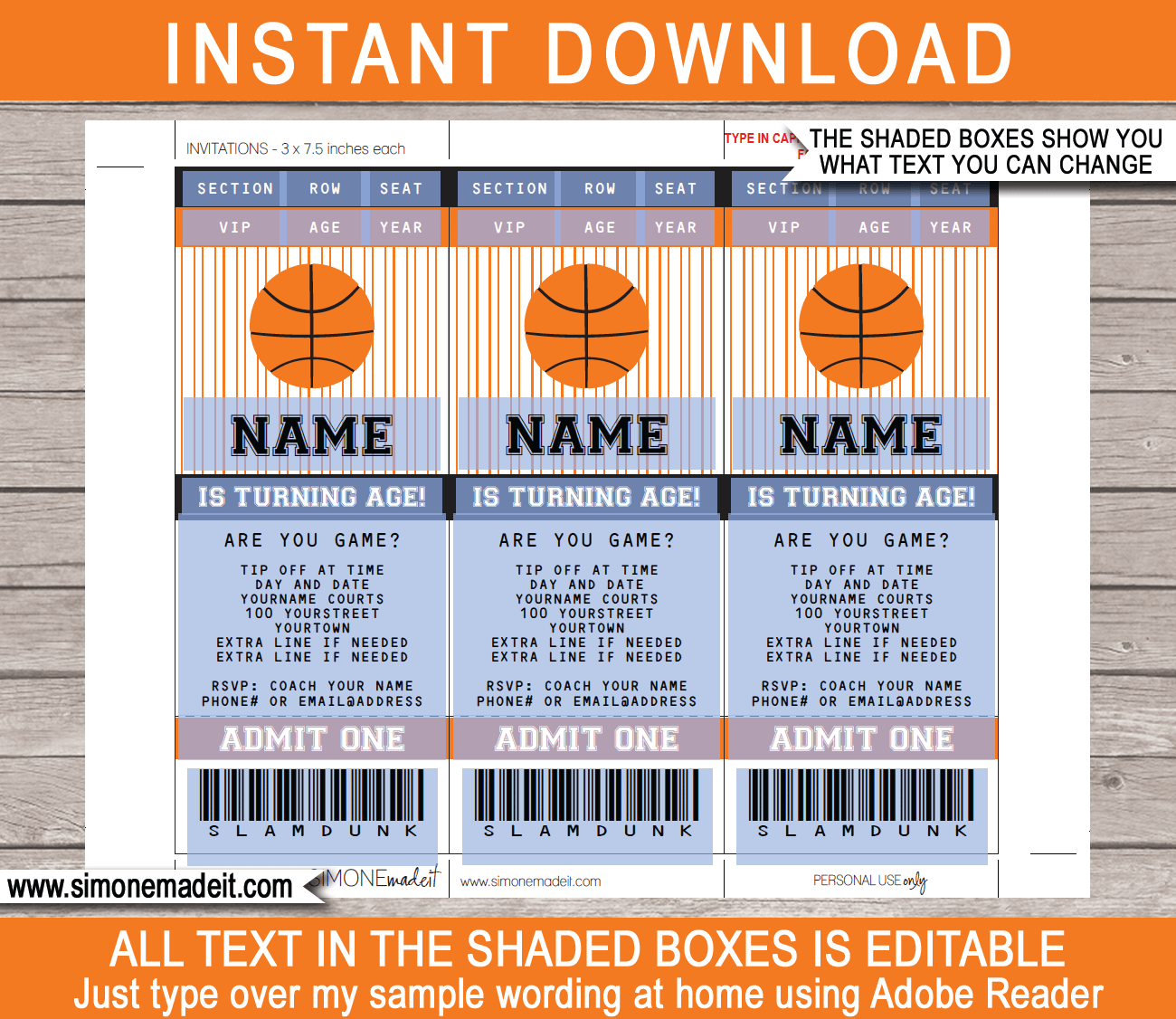So, why settle for boring, generic invitations when you can impress your guests with our free editable printable basketball ticket invitations? Download your template today, get creative with your customizations, and get ready to score big with an event that will be talked about for years to come!