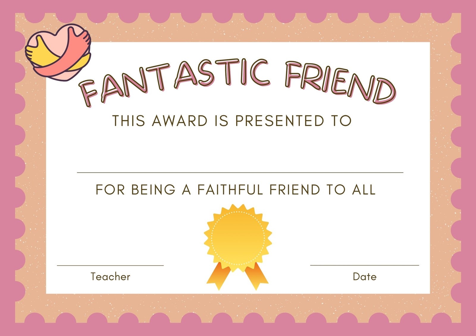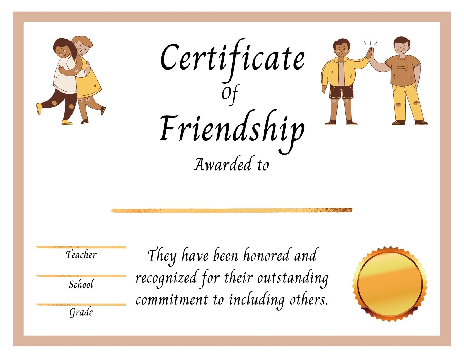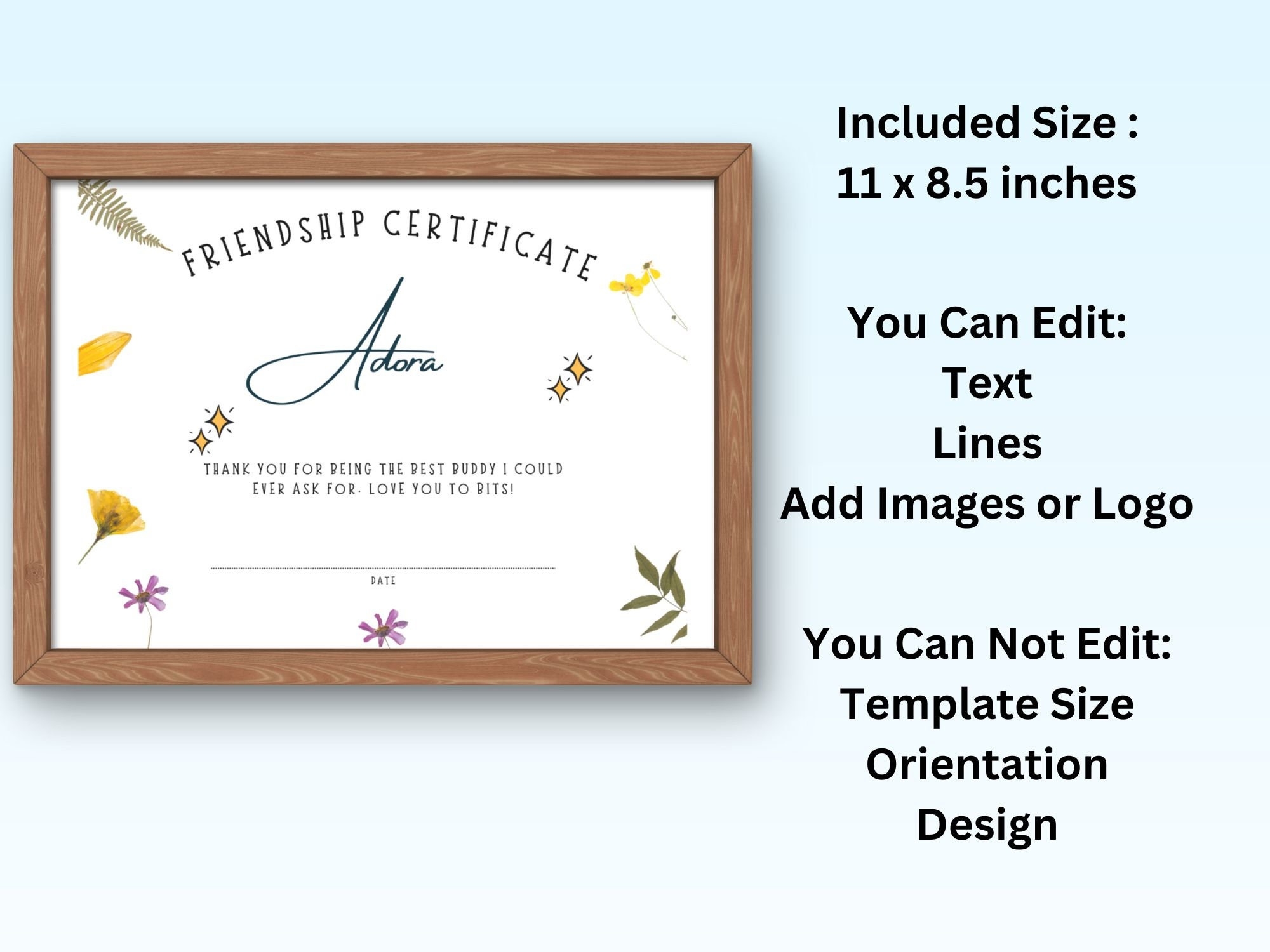 Certificate Of Friendship Award Style Gift With Editable Text Home Printable Digital Download Pdf Etsy