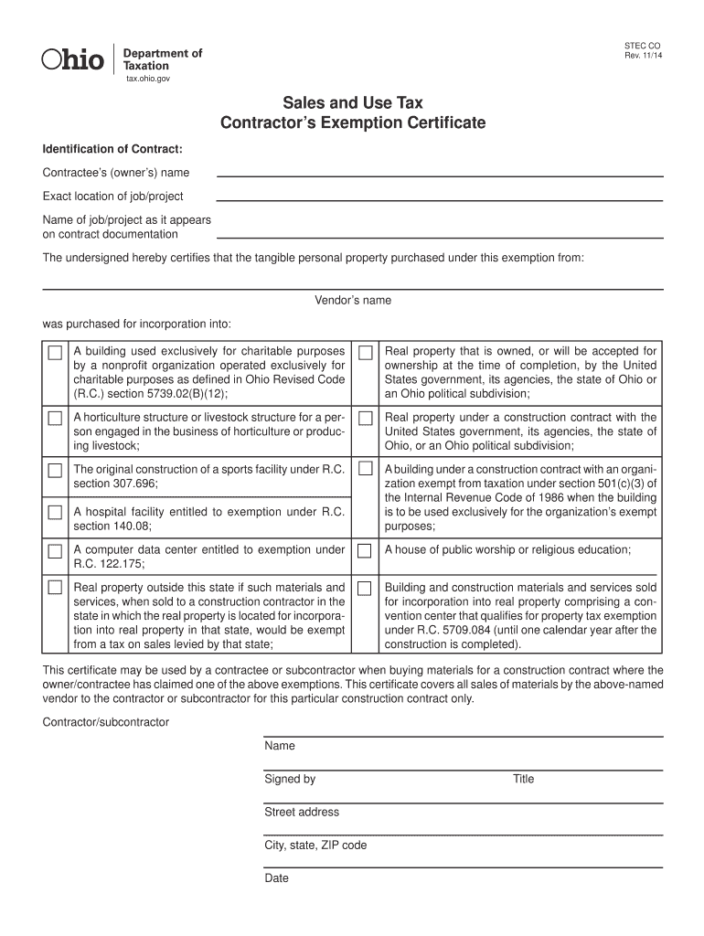 Ohio Sales Tax Exemption Form Fill Out Sign Online DocHub