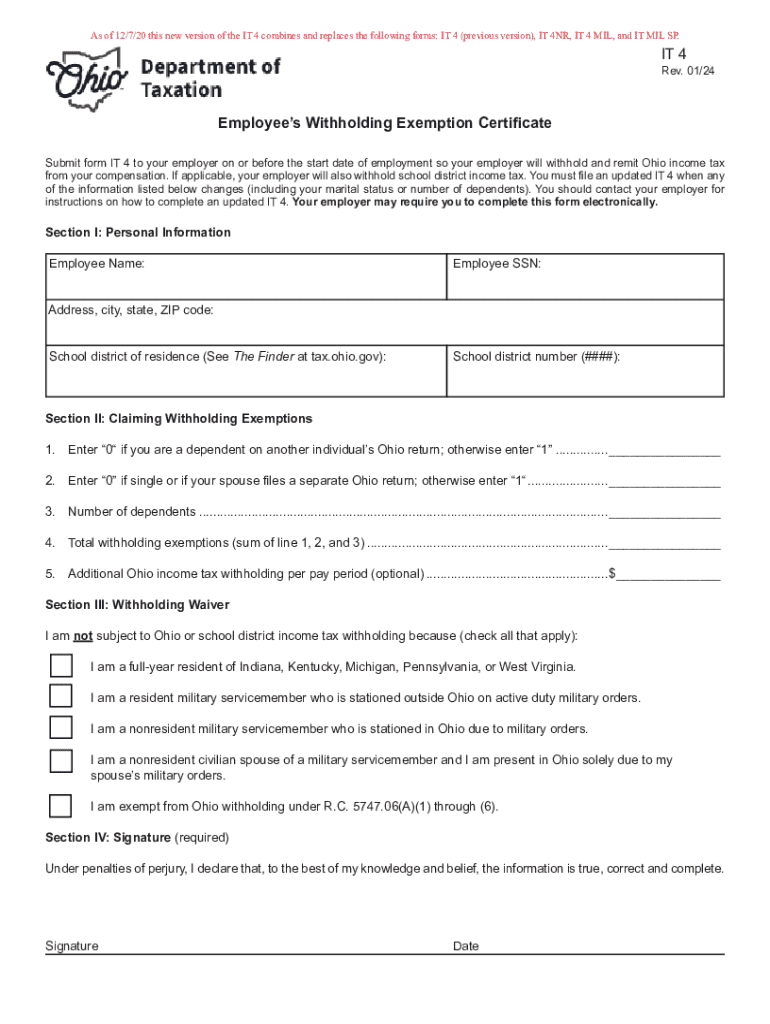 2024 Form OH IT 4 Fill Online Printable Fillable Blank PdfFiller