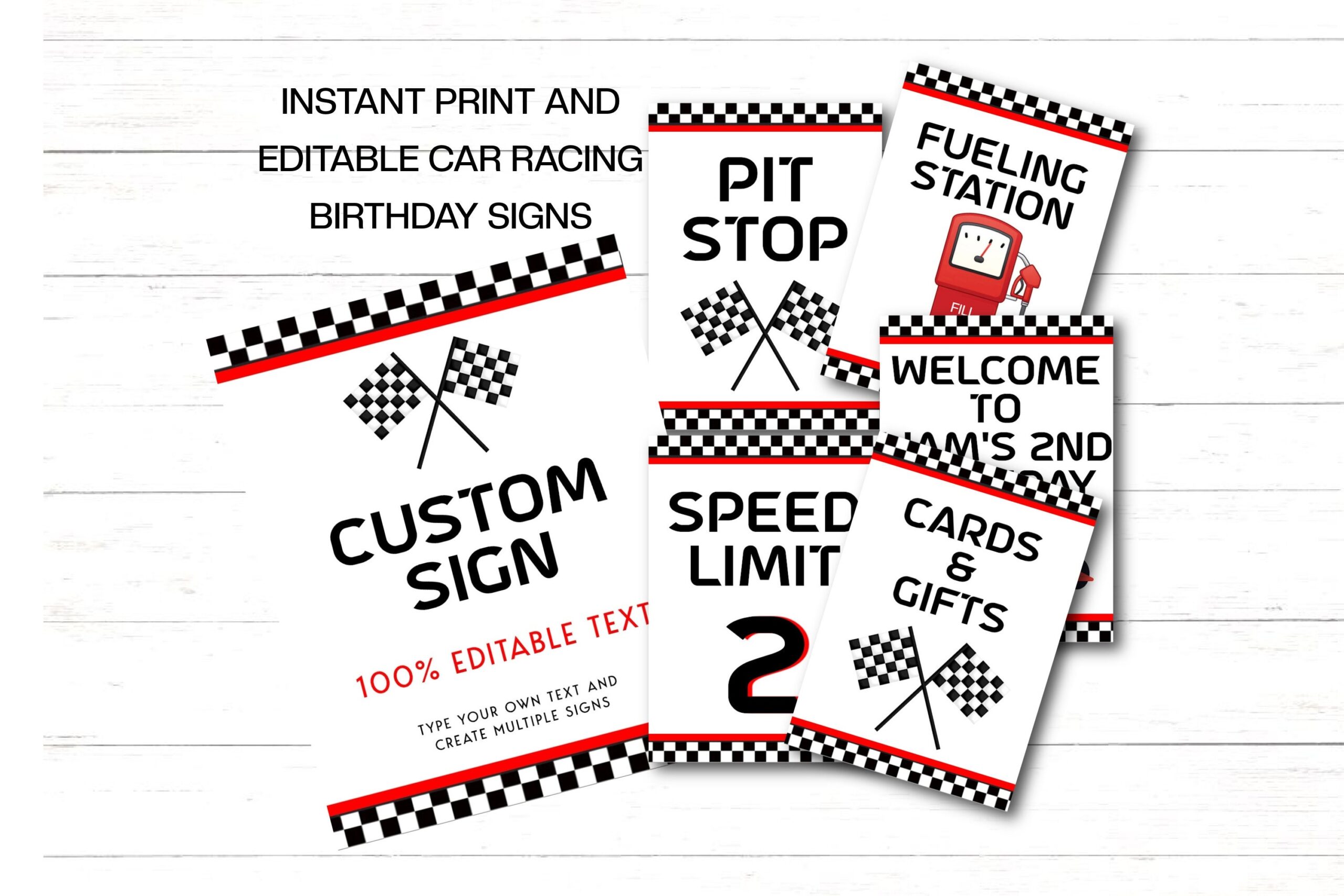 Editable Racing Birthday Signs Printable Car Race Party Signs X 6 To Print Instantly Edit Racing Party Display Signs instant Download RC Etsy