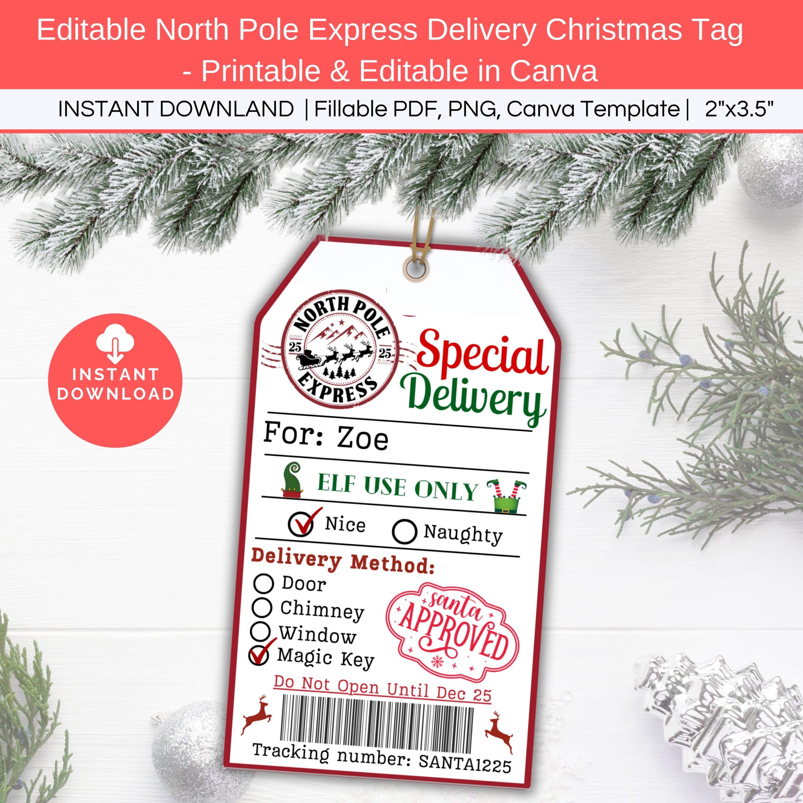 North Pole Express Delivery Xmas Design For A Personalized Gift Bag From Santa Claus Do Not Open Until 25th Of December Template For Christmas Handmade Gifts Vector Illustration Royalty Free SVG Cliparts