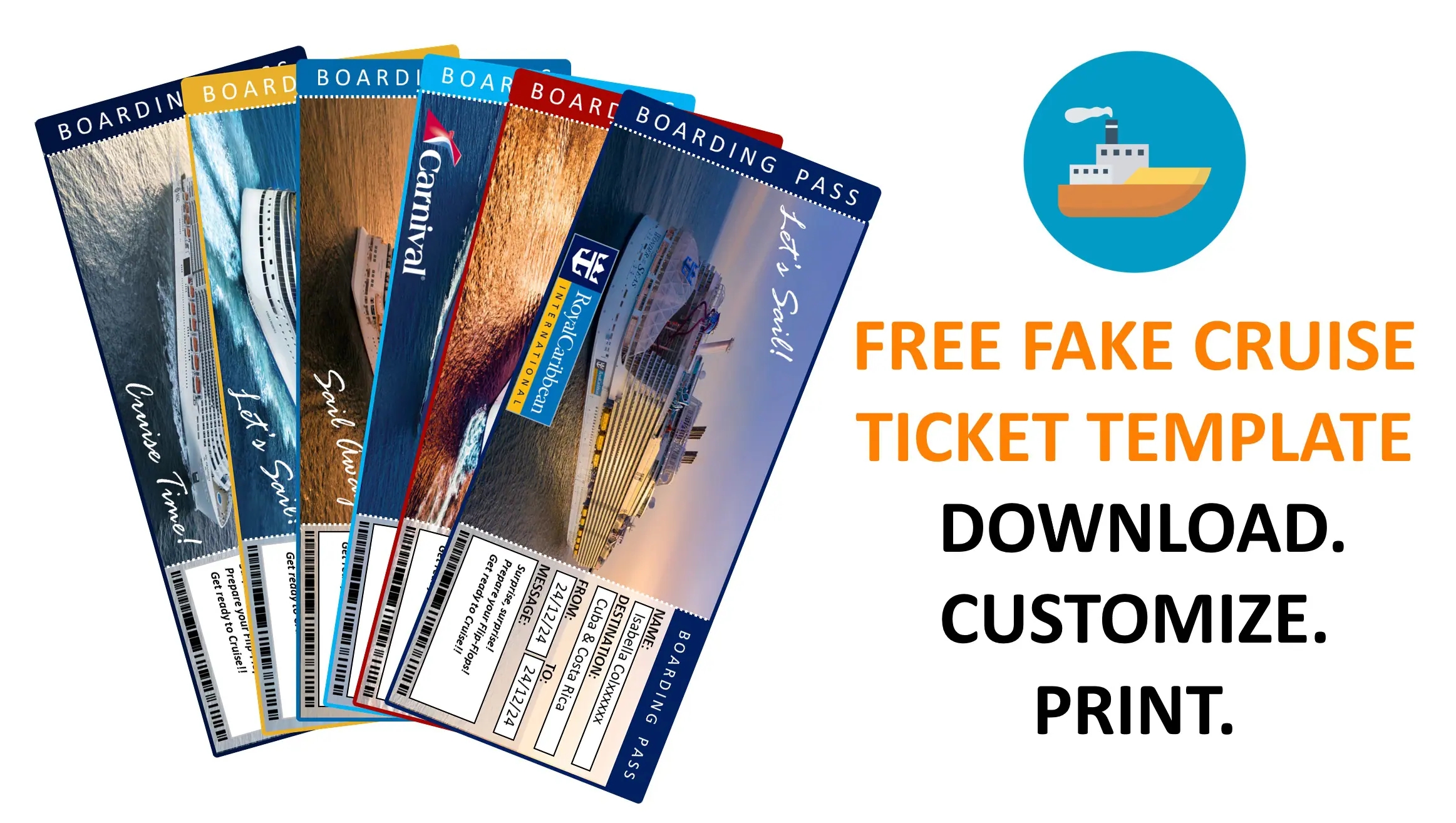 Our free editable/printable/download cruise boarding pass template is designed to make your boarding passes stand out. With customizable fields for passenger names, departure and arrival information, and even a barcode for that authentic touch, you can create a unique keepsake for your trip.
