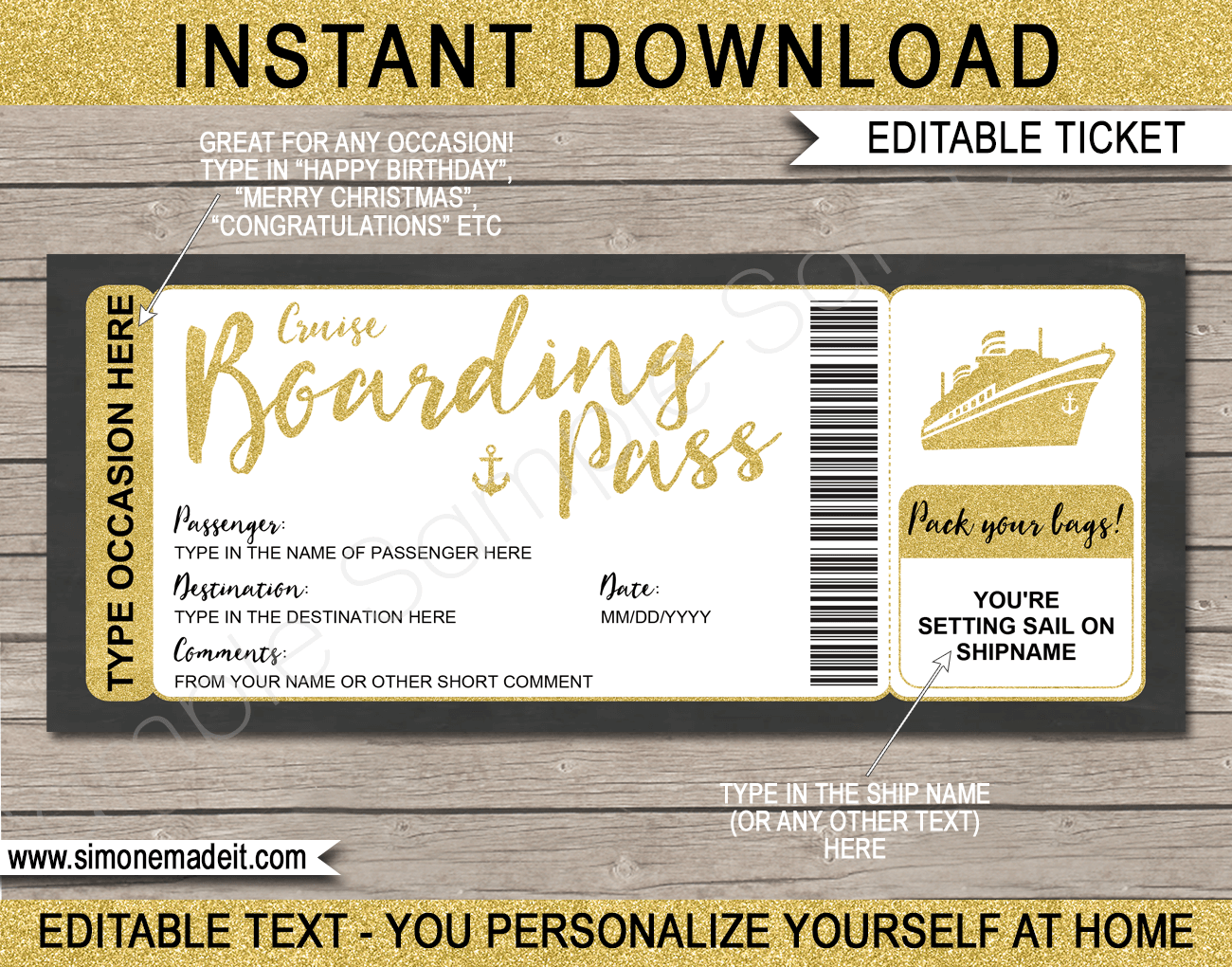 Cruise Boarding Pass Gift Voucher Template Printable Cruise Ticket