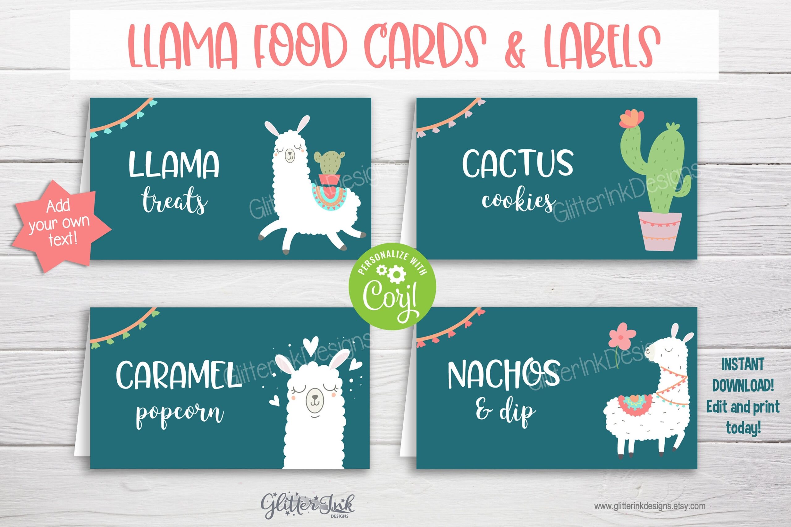 Llama Party Food Tent Cards Llama Birthday Labels Llama Place Cards Llama Party Decor Edit Download With Corjl Etsy