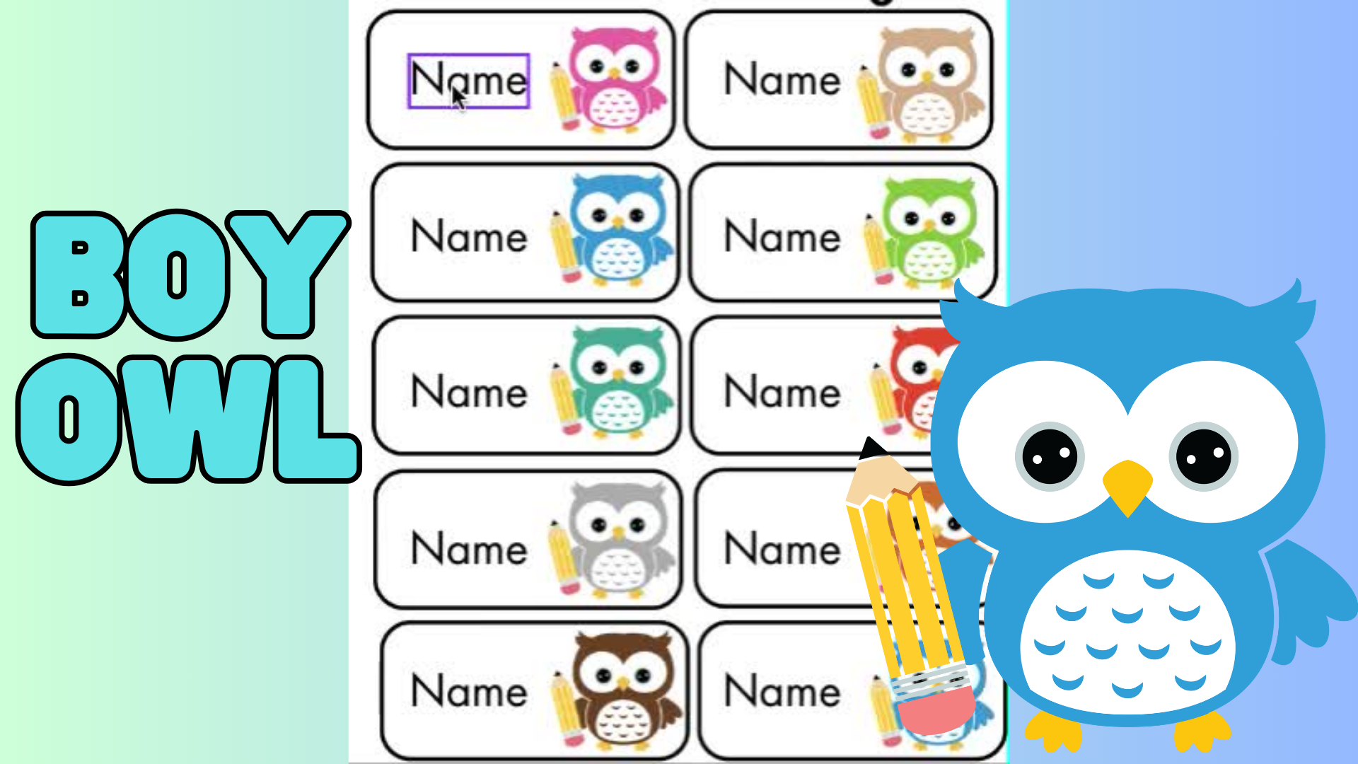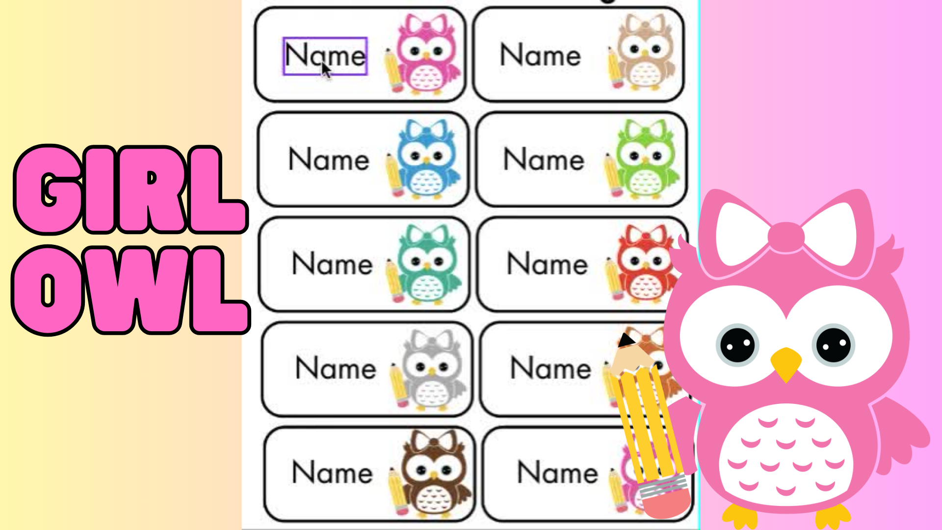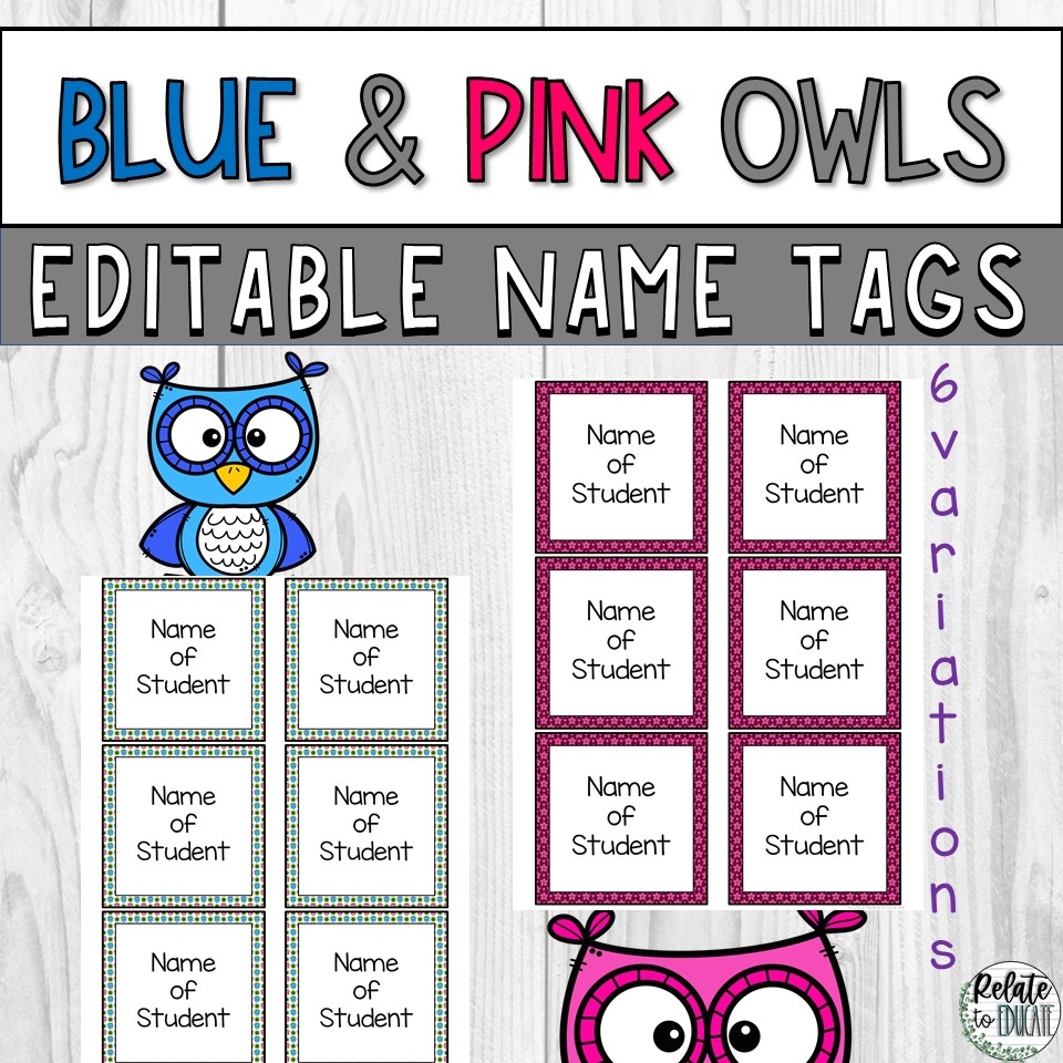 Blue Pink Owl Editable Printable Name Tags Made By Teachers