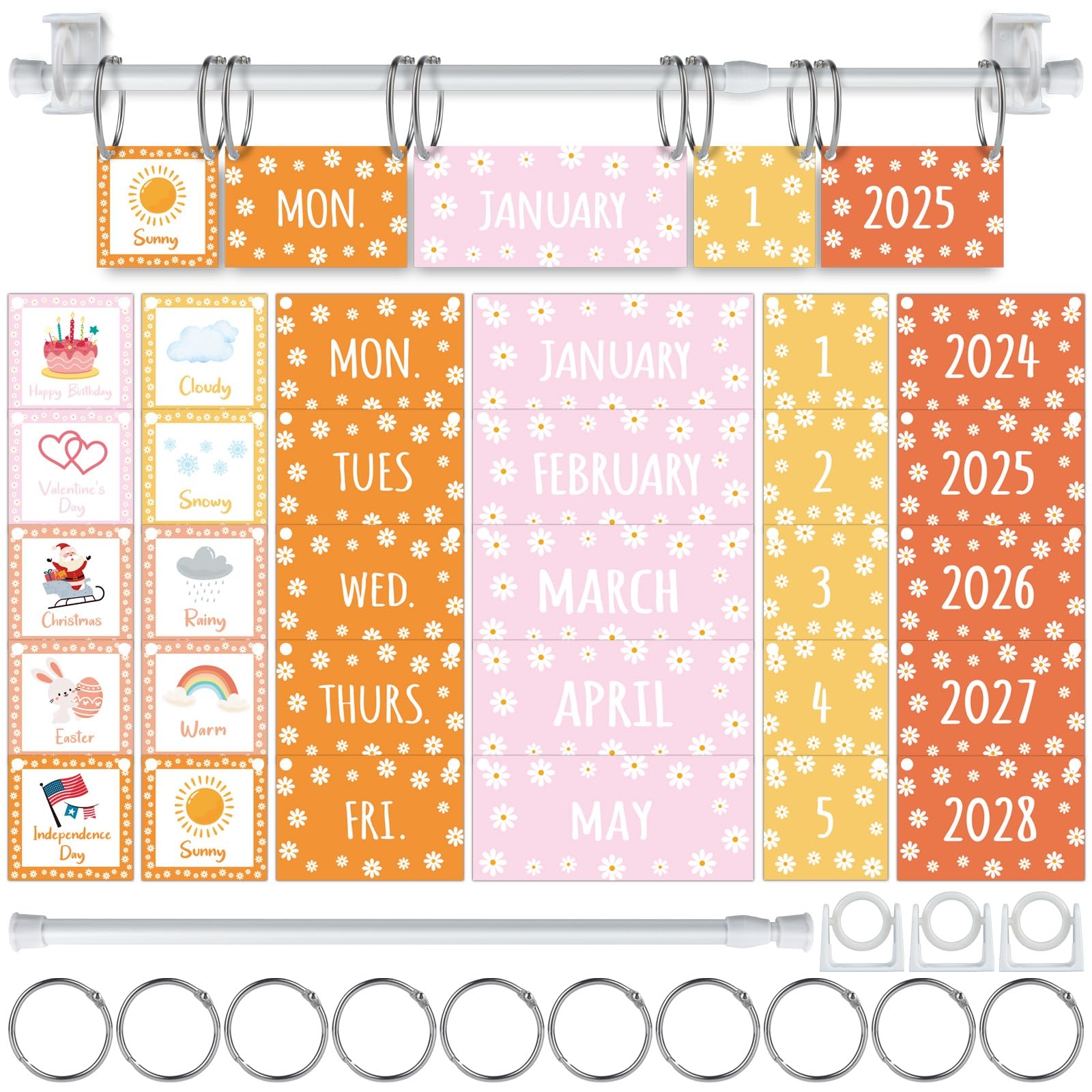 Classroom Flip Calendar Daily Flip Calendar Cards Pocket Chart Editable Groovy Classroom Door Decor Class Calendar