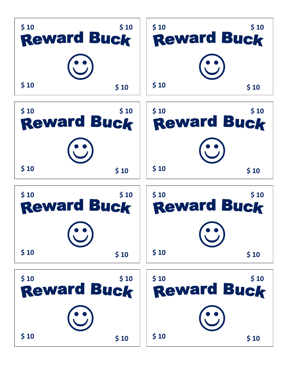 Ten Reward Buck Template Download Printable PDF Templateroller