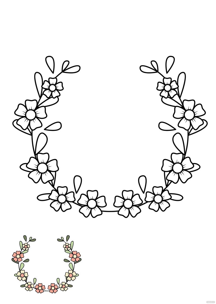 Yellow Floral Wreath Coloring Page In PDF Download Template