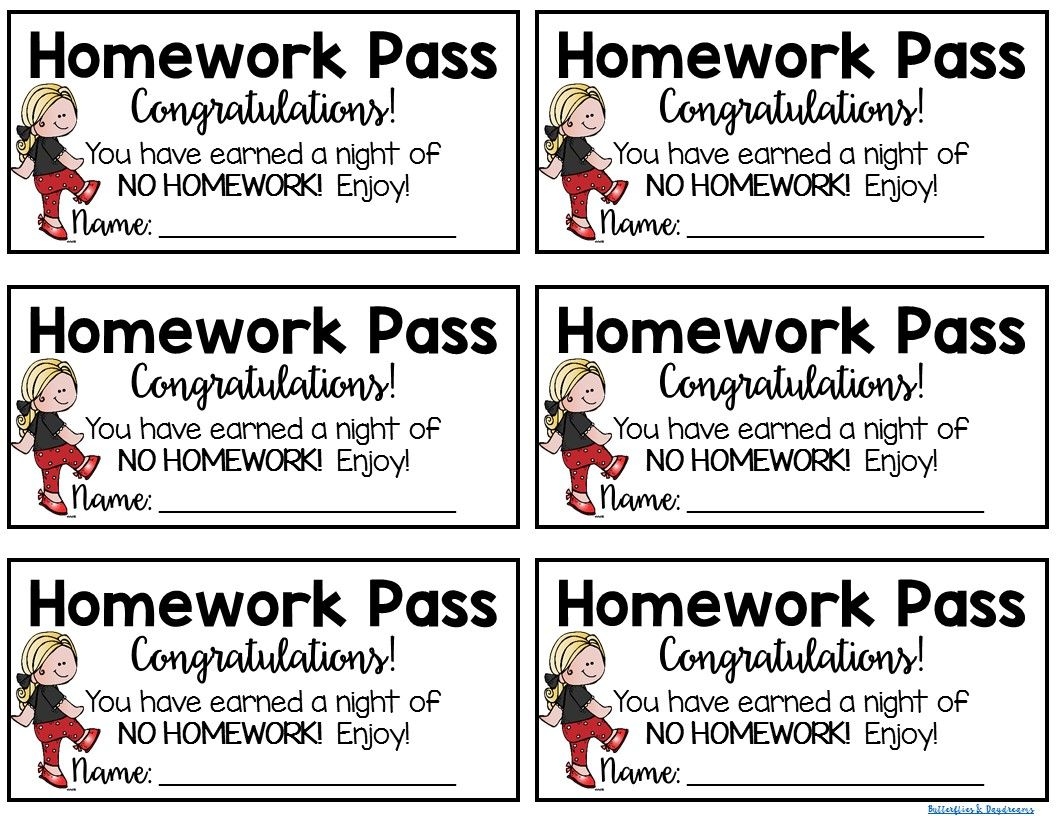 Homework Pass Template Digital Download sheet Of 6 Etsy
