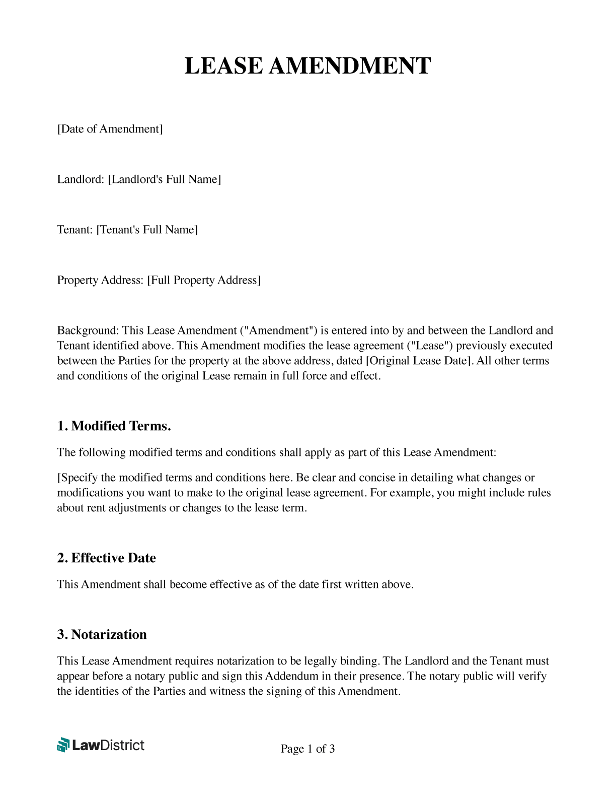 Amendement To Lease Agreement PDF Word Sample LawDistrict