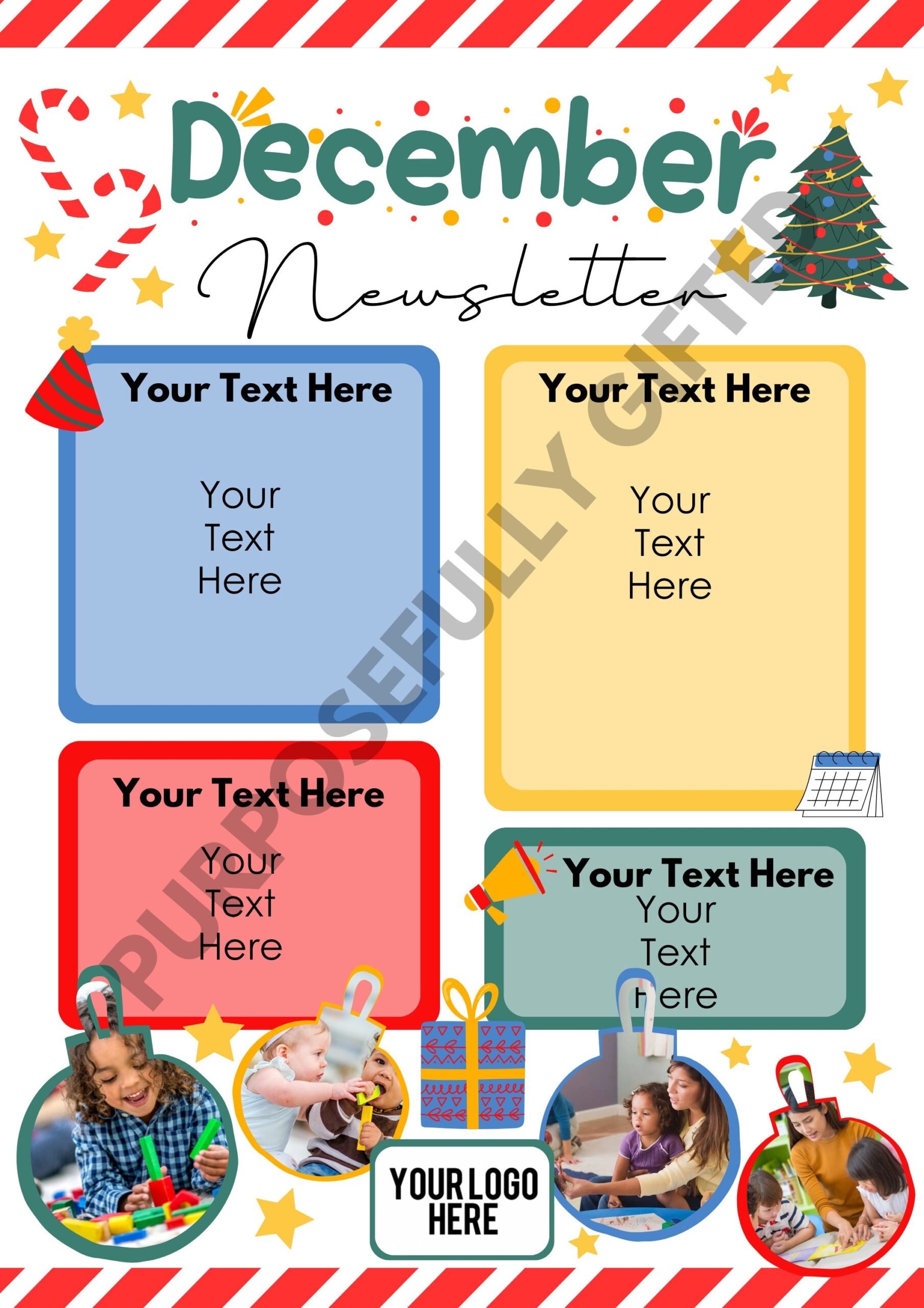 Our December newsletter template features festive designs and colors that will surely put everyone in the holiday spirit. Simply download the template, fill in the blanks with your information, and print or email it to parents.
