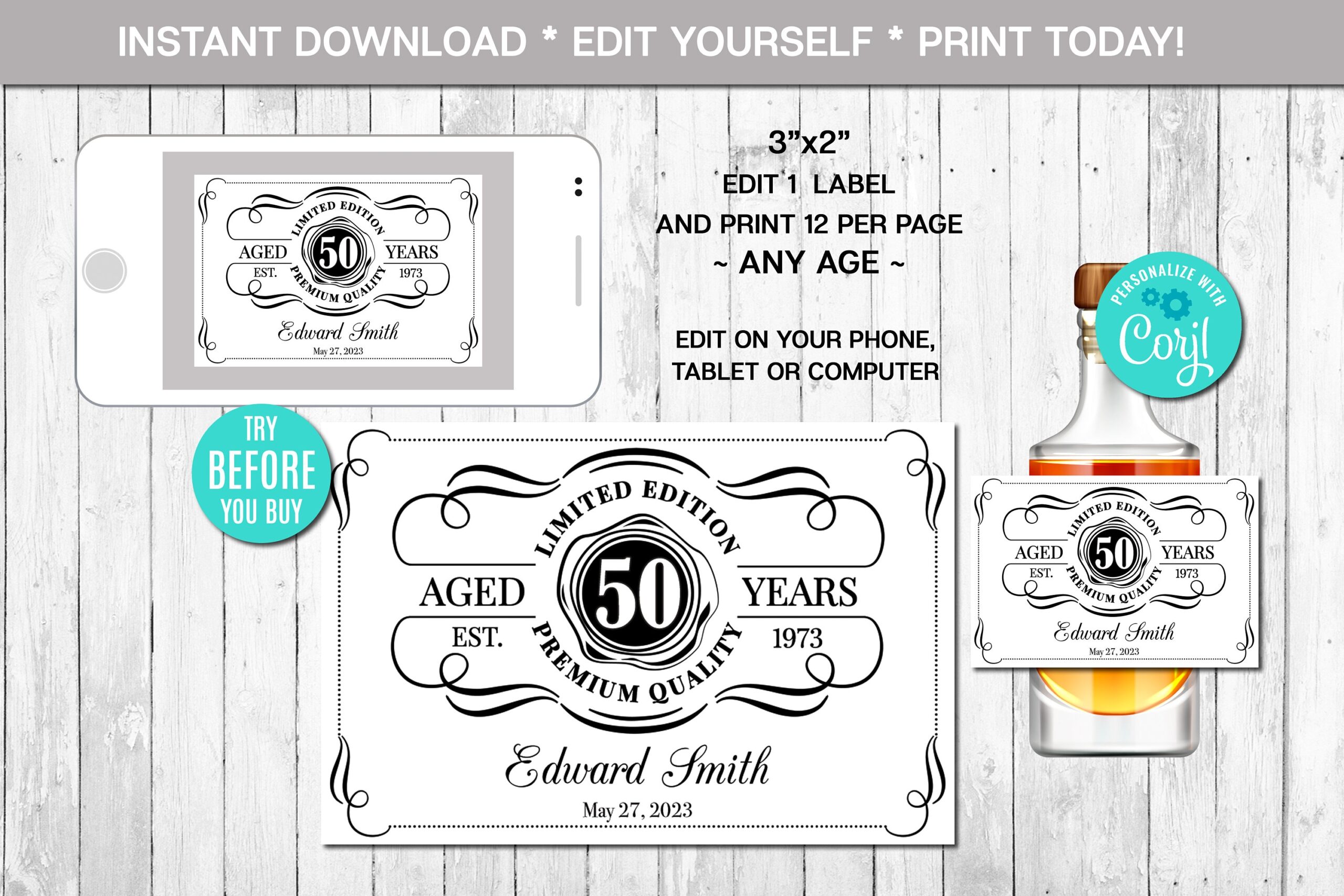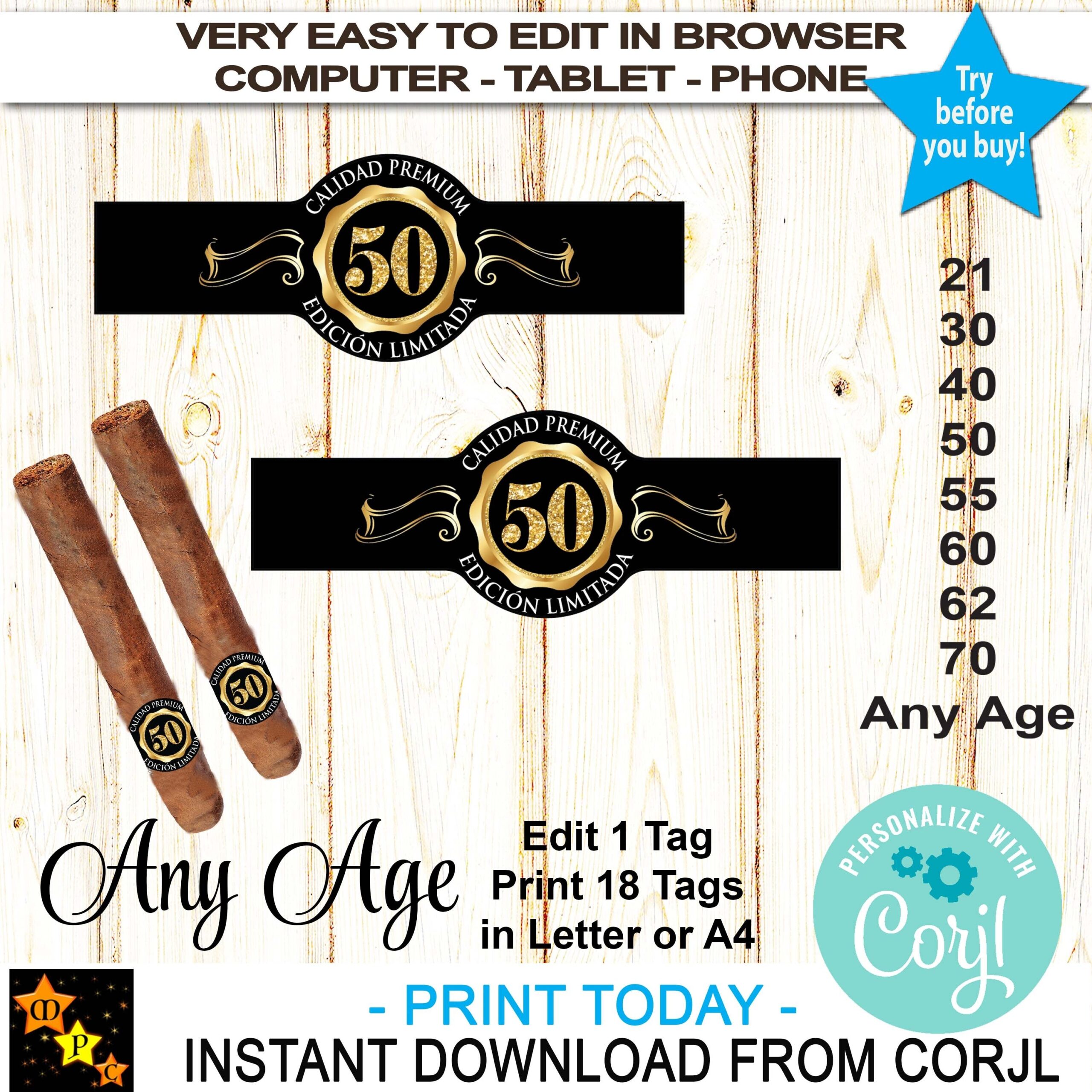 EDITABLE Cigar Labels 50th Birthday Cigar Band Any Age Aged To Perfection White Whiskey Label Instant Download CORJL Digital File Etsy