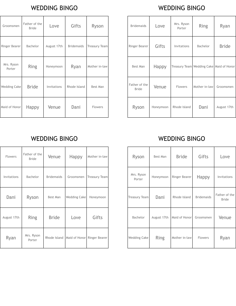 Whether you want to keep your guests entertained during the reception or have a fun activity for the bridal party to enjoy, these bingo cards are a great option. You can customize them with your own words, images, or themes to make them truly unique.
