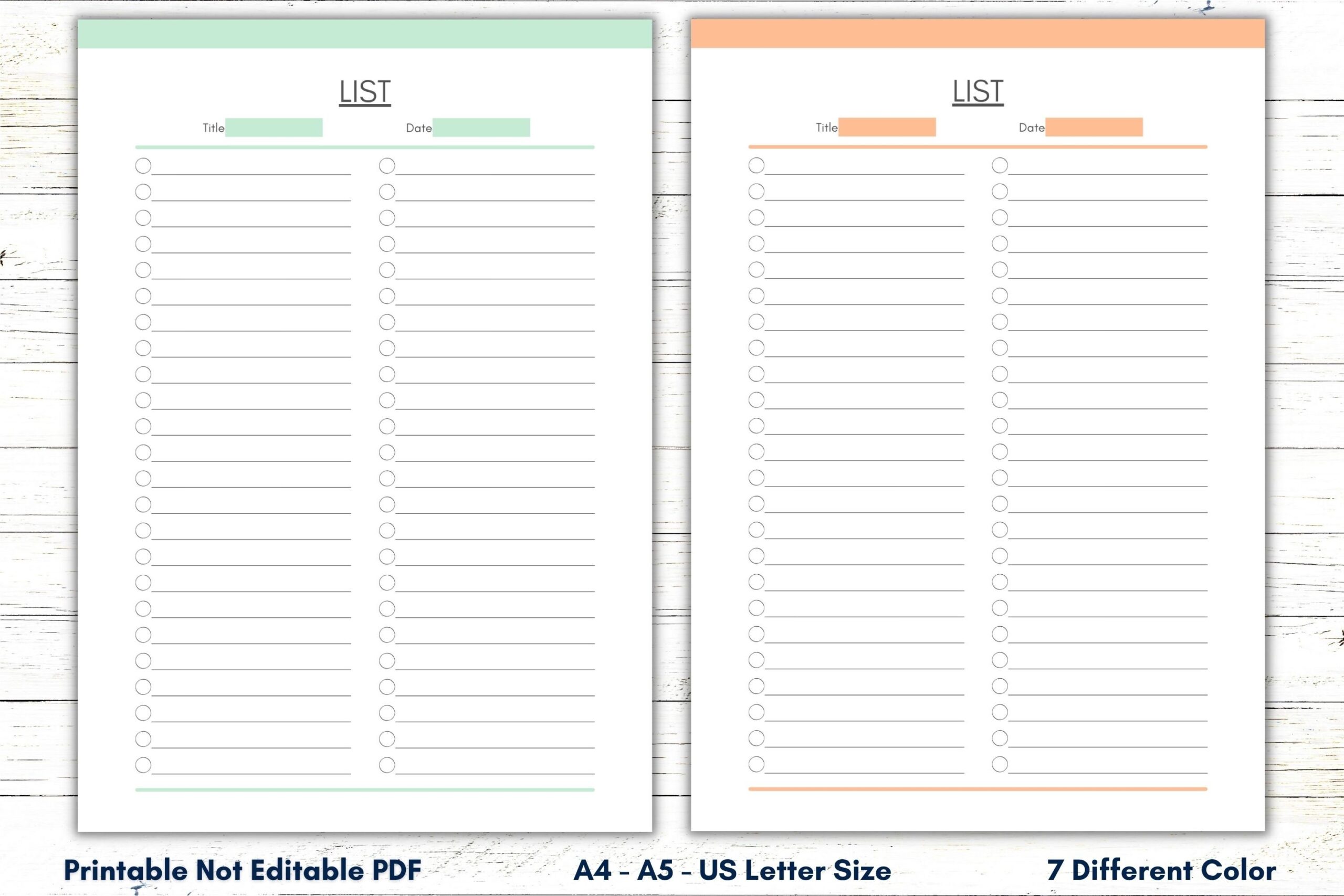 Printable Blank List Template Blank Checklist Form Blank List Form Blank List For Planners Checklist Template List Insert Organizer Etsy