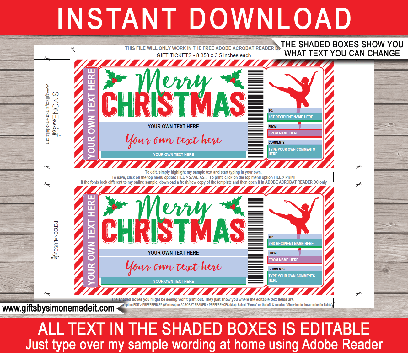 Christmas Ballet Ticket Template Printable Gift Voucher Certificate